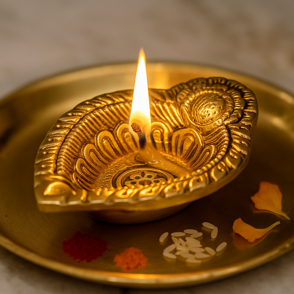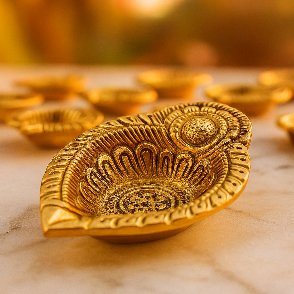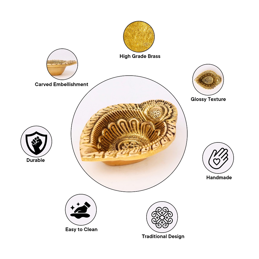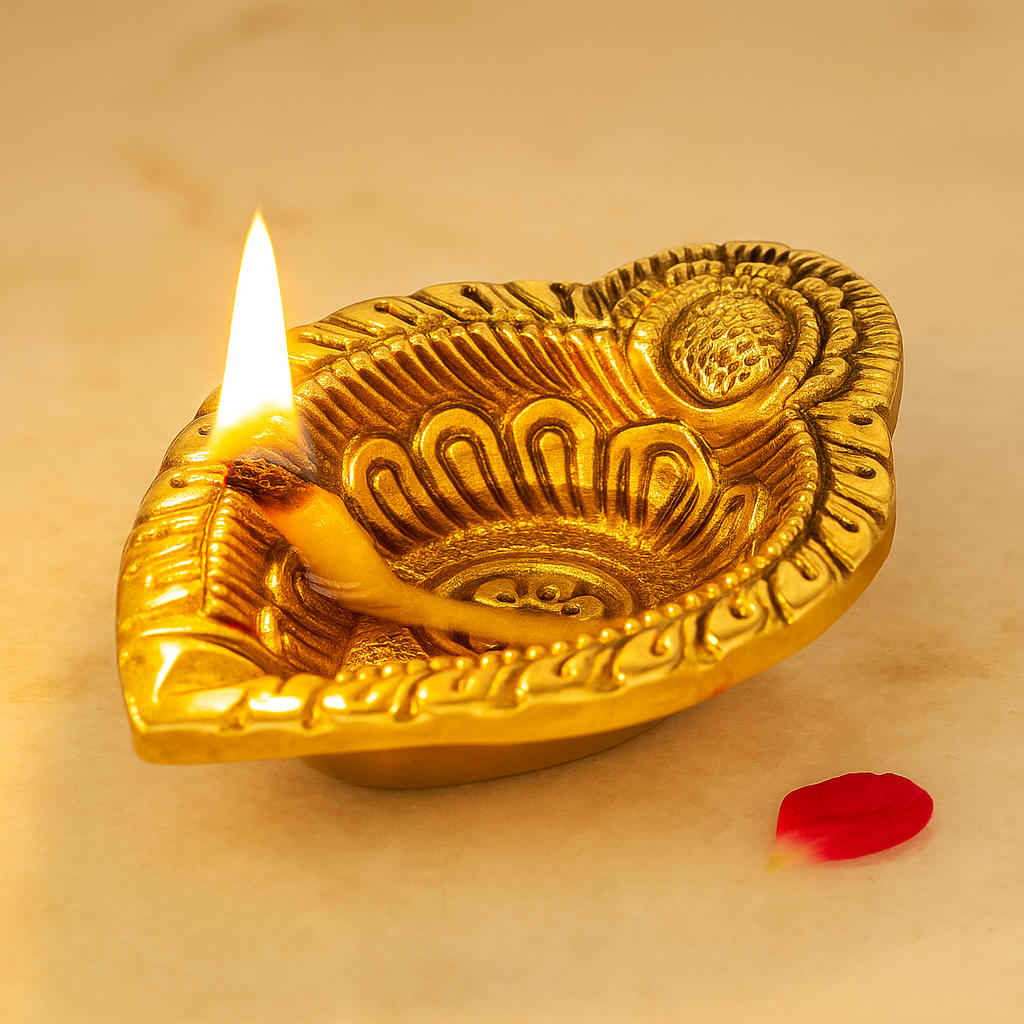 Illuminate your space with the timeless beauty of this Intricate Leaf Shaped Brass Diya, a diya that embodies purity, growth, and harmony. Handcrafted by skilled artisans, its leaf-inspired form symbolizes renewal and prosperity, while the golden brass polish radiates divine energy. Compact yet detailed, this diya is an exquisite choice for daily puja, Diwali décor, or as a meaningful spiritual gift.