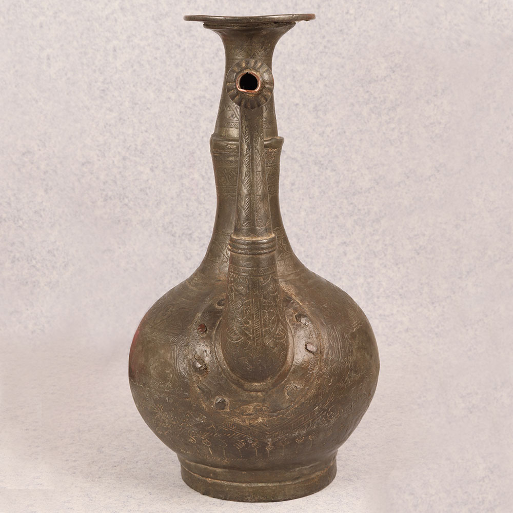 Indulge in the timeless elegance of our Vintage Copper Aftaba Pot that is a stunning testament to the artistry of highly skilled Indian artisans in Islamic design. Meticulously handcrafted from high-quality copper, this exquisite piece showcases the rich cultural heritage of traditional craftsmanship. The aftaba pot features a gracefully curved spout, adding a touch of functional sophistication to its ornate form. Adorned with intricate engravings that weave tales of history and culture, the pot boasts an antique brown finish, lending it an aura of ageless charm. Perfect for enhancing the aesthetic appeal of any space, be it your home, office, restaurant, hotel, or cafe, this masterpiece effortlessly blends art with functionality. Elevate your interior decor by incorporating this vintage treasure into your collection, creating a captivating focal point that resonates with the allure of a bygone era. Its versatility extends beyond aesthetics, as it makes for an ideal and thoughtful gift for your family, friends or relatives on special, festive, or auspicious occasions. Embrace the allure of vintage charm with this handmade copper aftaba pot, a celebration of craftsmanship that transcends time and captivates the senses.