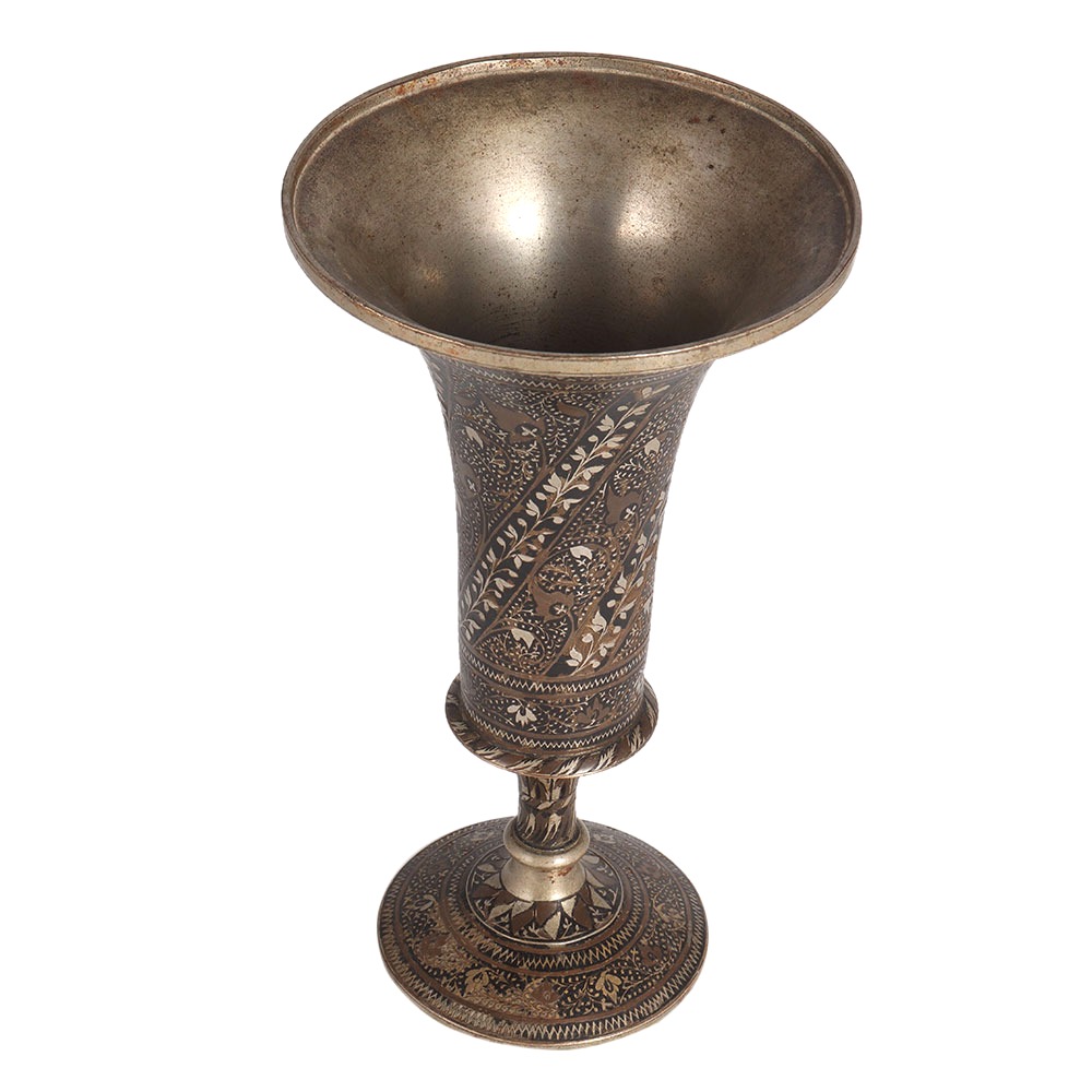 A very rare motif carving in Islamic art pot will give an aesthetic look to your home or office interior. A beautifully engraved pot with stand will be an eye-catcher in your vintage collection or as a flower pot on tables in a restaurant, hotel reception or shop. This beautiful pot is made of white metal. A top choice for vintage art lovers to add this vintage style flower pot with antique finish to their collection. An incredible decorative piece to give to your loved ones on special and festive occasions.