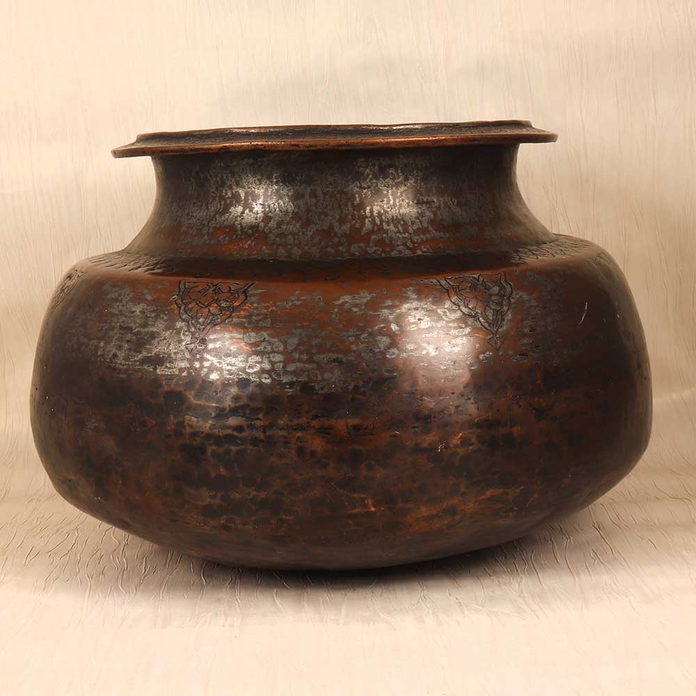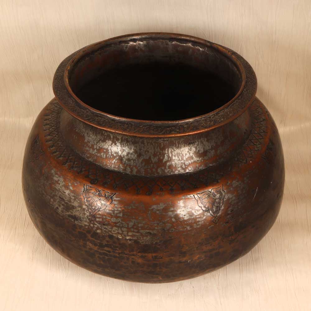 - Intricately etched with intricate Islamic motifs, this copper pot showcases the region's rich cultural legacy.