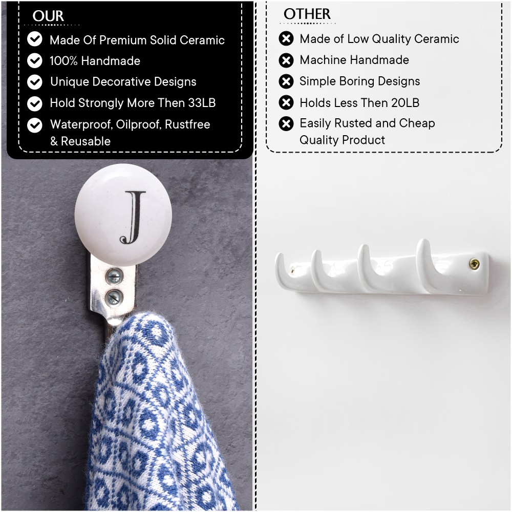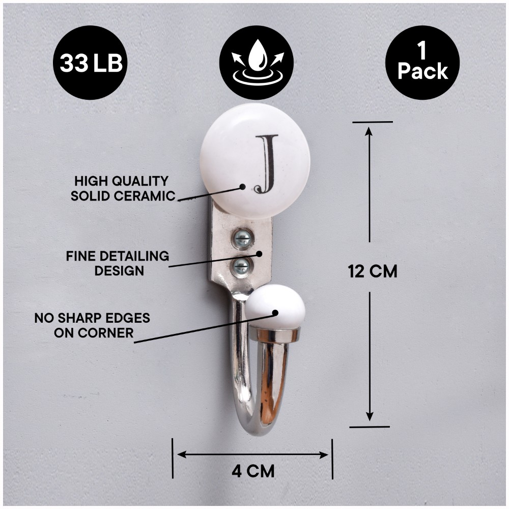 J Flat Ceramic Hook. When Put on Wall or Cabinet It is An Art in Itself. This Hook is Strong Enough to Hold Your Keys, Tea Cups, Hand Towels, Cloths Etc.
