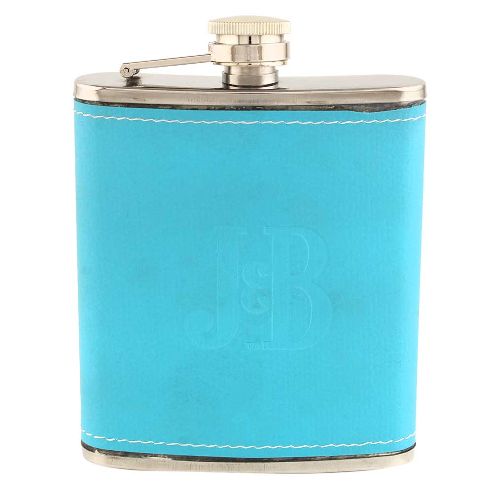 The stainless steel hip flask is encased in exquisite pale blue leather protecting your fingertips from the cold metal. The cap is easily added to the flask and fastens. The flask's shape is designed to fit your body shape, making it a practical addition to carry in your pocket.
