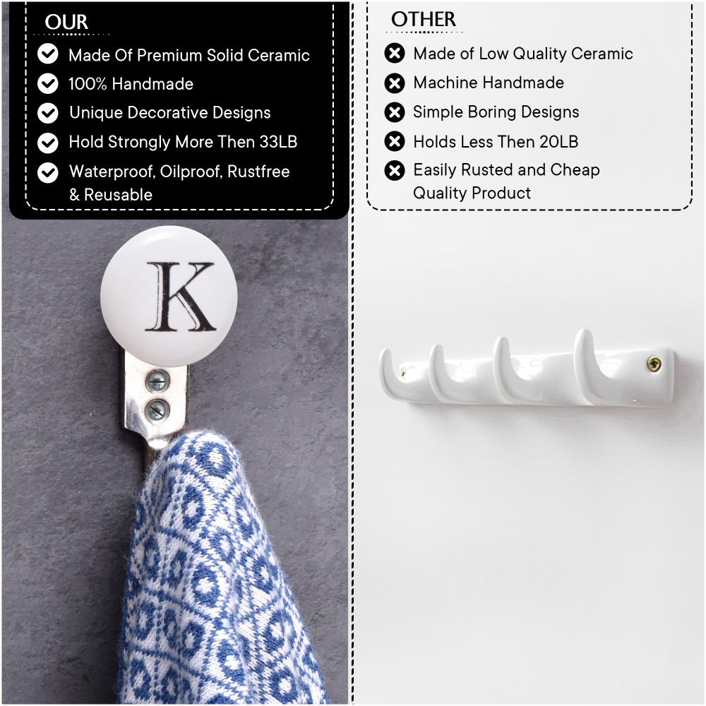 K Flat Ceramic Hook. When Put on Wall or Cabinet It is An Art in Itself. This Hook is Strong Enough to Hold Your Keys, Tea Cups, Hand Towels, Cloths Etc.
