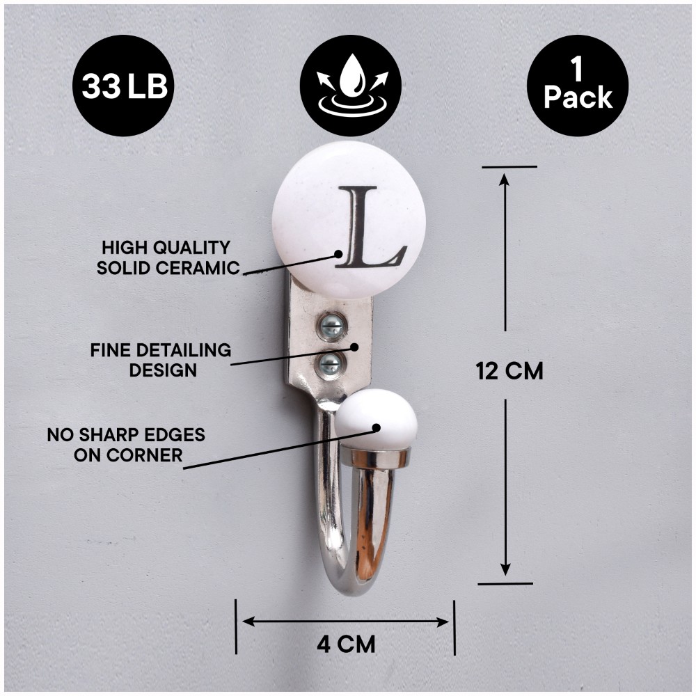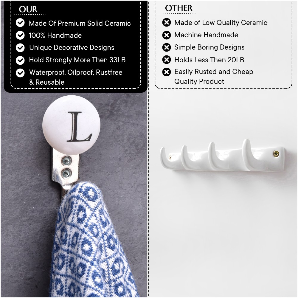 L Flat Ceramic Hook. When Put on Wall or Cabinet It is An Art in Itself. This Hook is Strong Enough to Hold Your Keys, Tea Cups, Hand Towels, Cloths Etc.