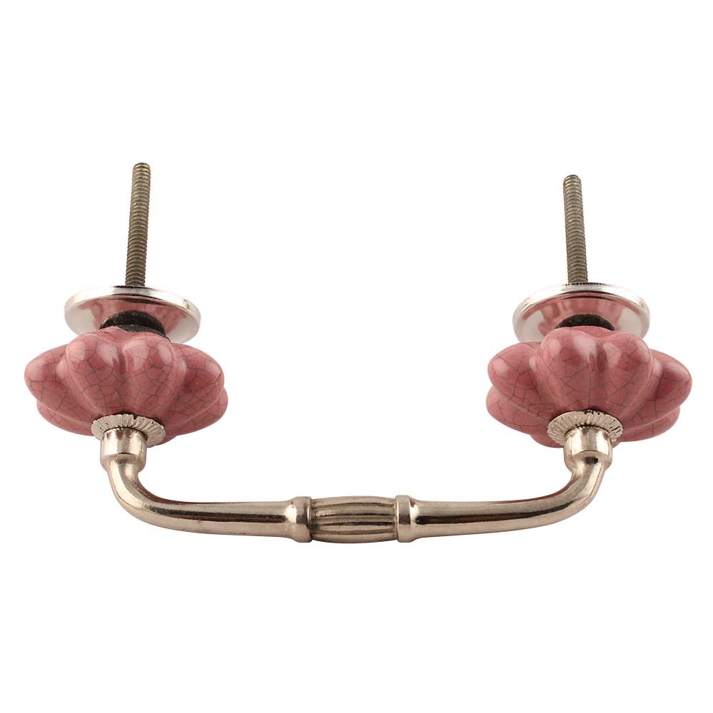 Lavender Crackle Ceramic Melon Bridge Handle. Ideal for Drawer, Dresser, Cabinet, Wardrobe, Cupboard and Almirah etc.