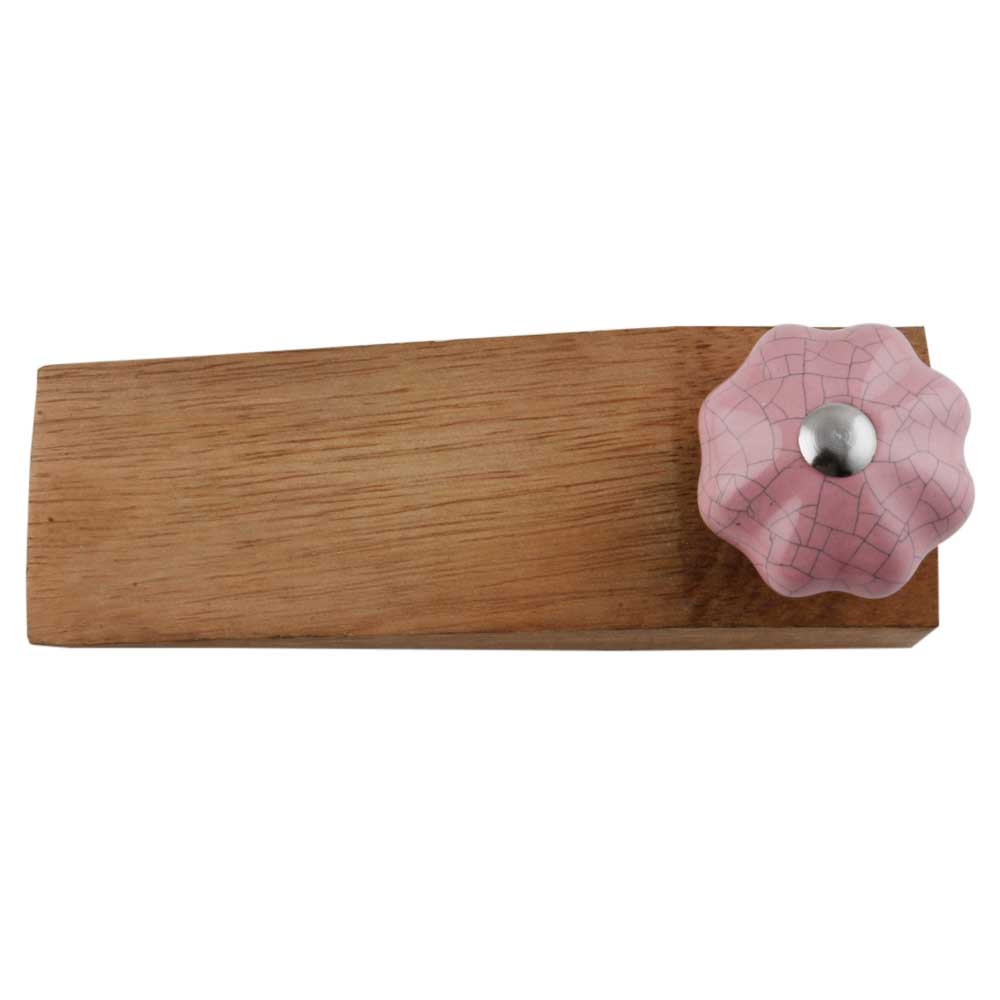 Handmade Ceramic and Wooden Door Stopper.Wooden Door Stopper with a Ceramic Knob to Carry it Easily. This Wooden Door Stopper has Glue Dots under it to Ensure that it does not Slip. It is Handmade by the Craftsmen of India and this Innovative Door Stopper won't Disappoint You.