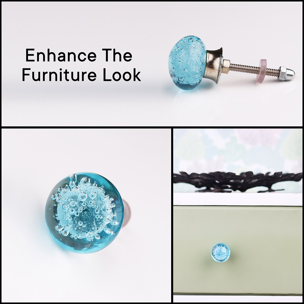 The knobs are crafted from high-quality glass, ensuring durability while showcasing a gorgeous bubble effect that catches the light in delightful ways. Each knob is unique, with slight variations that add to their charm.