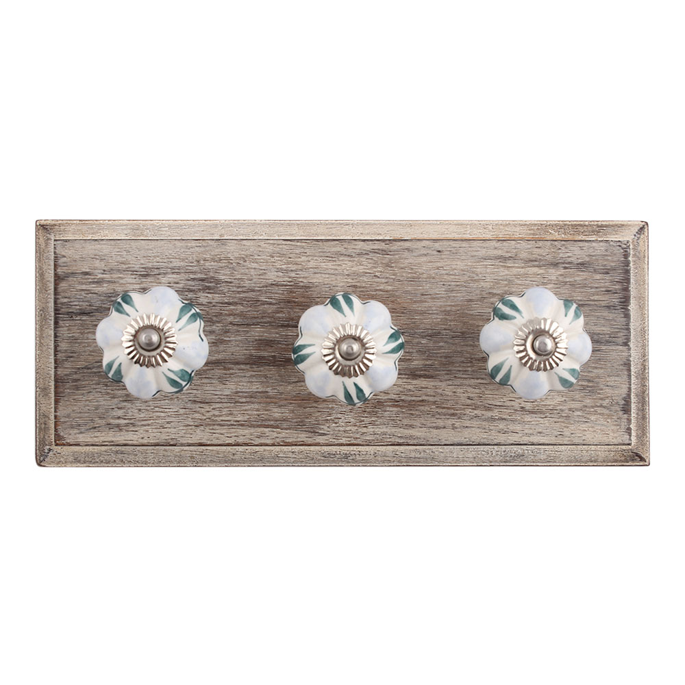 Light Blue Ceramic Wooden Hook. A Perfect Complement to the Soft Tone of the Wood are these White Traditional Hat & Coat Hook Made of Genuine Porcelain and Brass. It can be use to Hang Jewellery, Leashes, Towels, Scarves, Light Weight Sweaters, Caps Etc.