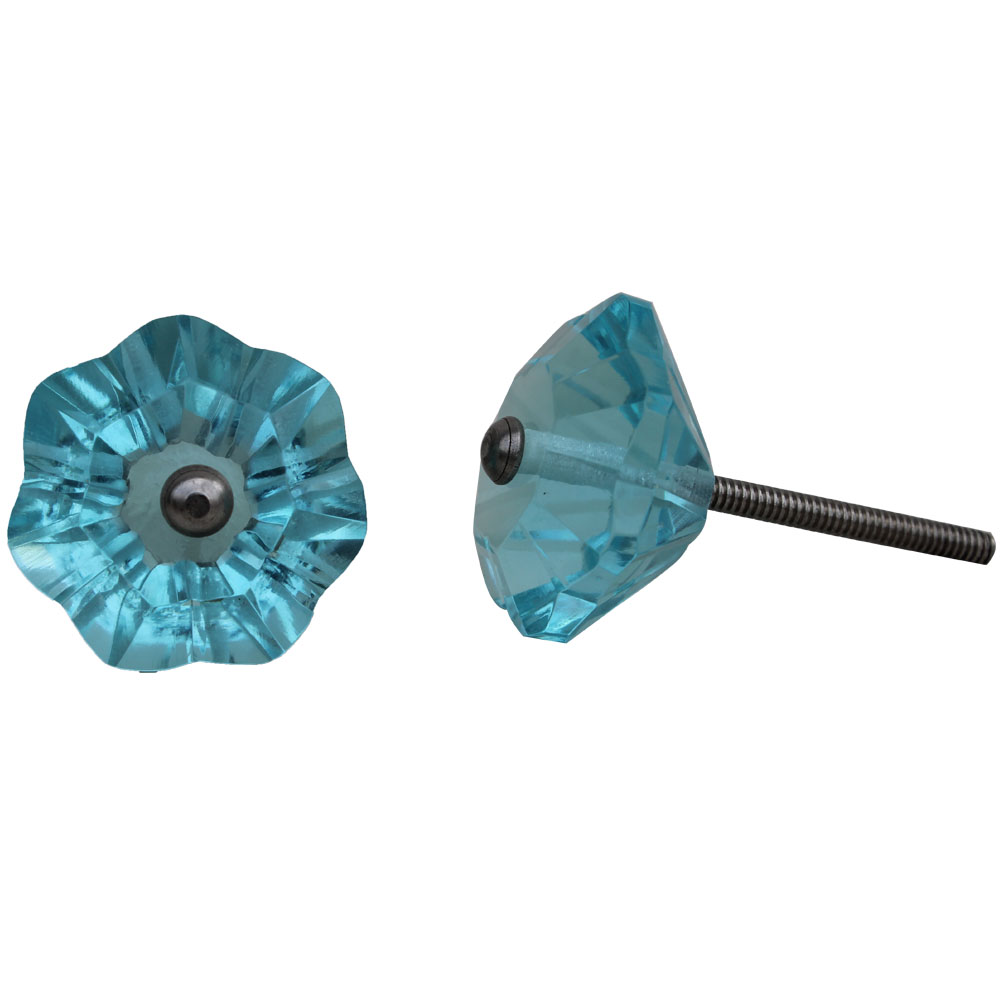 Light Blue Floral Glass Knobs. Ideal for Drawer, Dresser, Cabinet, Wardrobe, Cupboard and Almirah.