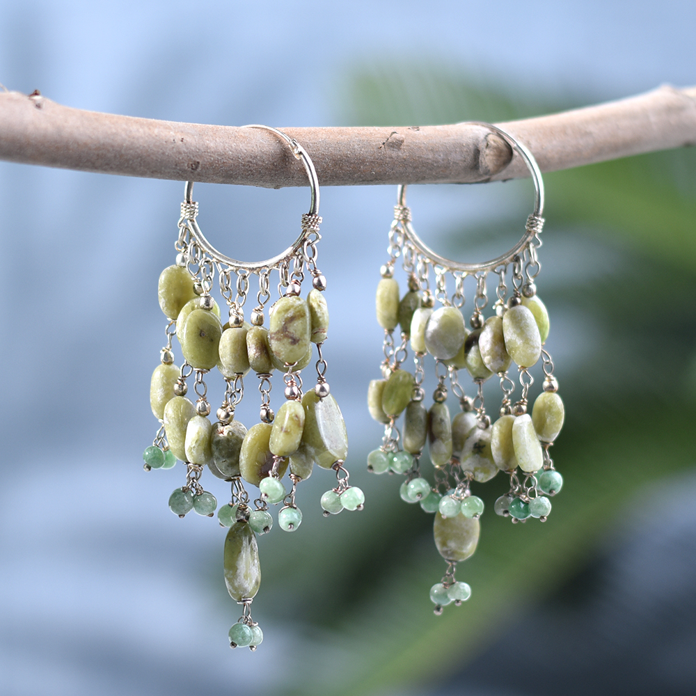 This light green beaded drop earrings with 92.5 sterling silver are a beautiful and elegant accessory. The light green beads add a touch of color and natural beauty to the earrings. The beads are strung together on a 92.5 sterling silver drop design which adds a touch of elegance and luxury to the earrings. The Sterling silver is a high-quality metal that is resistant to tarnish and is often used in fine jewelry. The drop design creates a dramatic and striking look, perfect for making a statement. These earrings are perfect for those who want to add some color and personality to their jewelry collection. They are versatile and can be worn with any outfit and occasion, perfect for any casual or formal events. The light green color of the beads brings a sense of calmness, freshness, and positivity making them perfect to wear on any occasion.