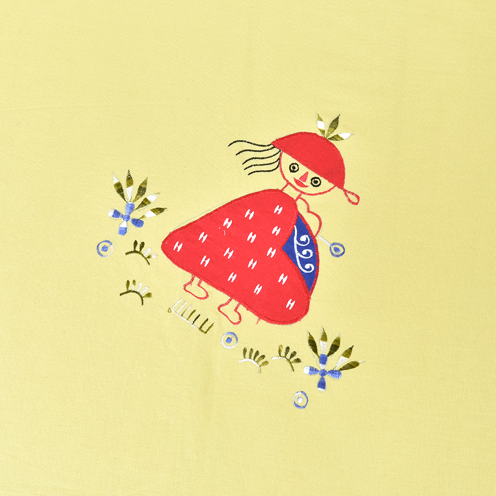 Light Green Cotton Bed sheet Little Red Riding Hood Patchwork and Two Pillow Covers.