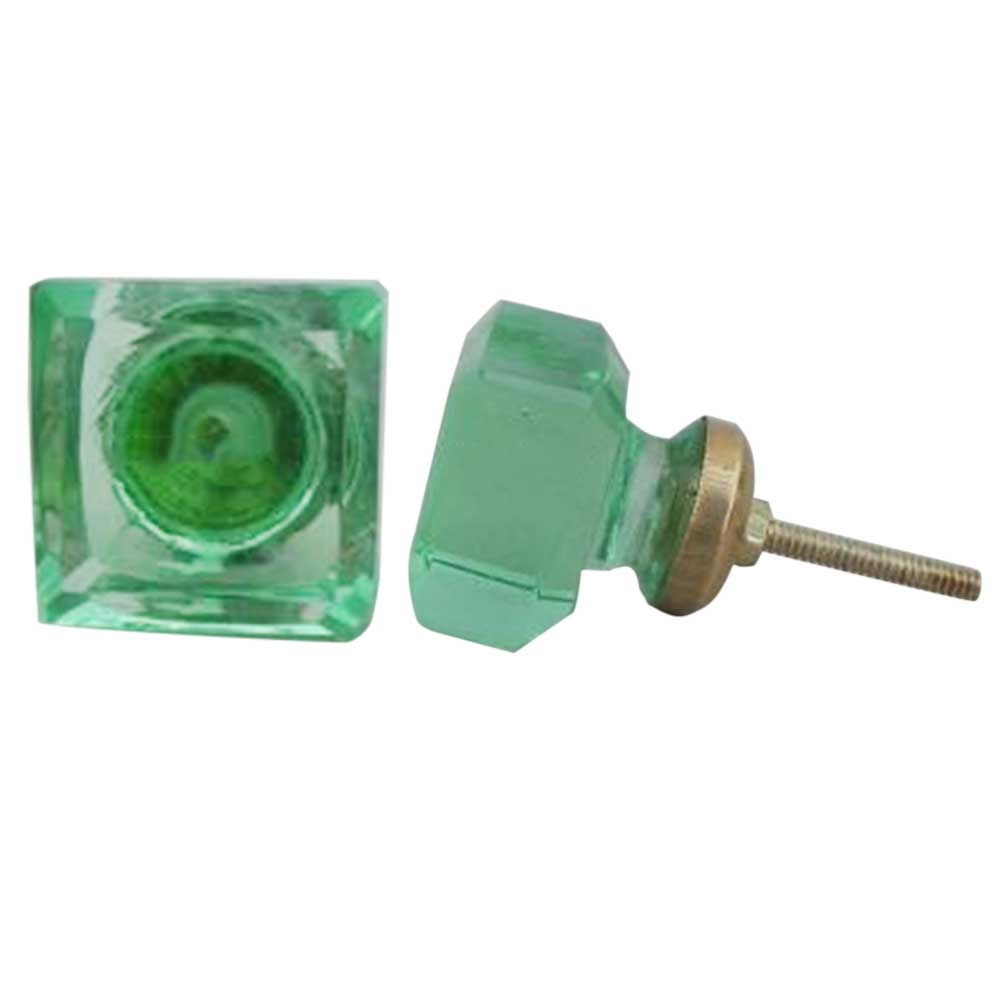 Light Green Square Glass Knobs. Ideal for Drawer, Dresser, Cabinet, Wardrobe, Cupboard and almirah