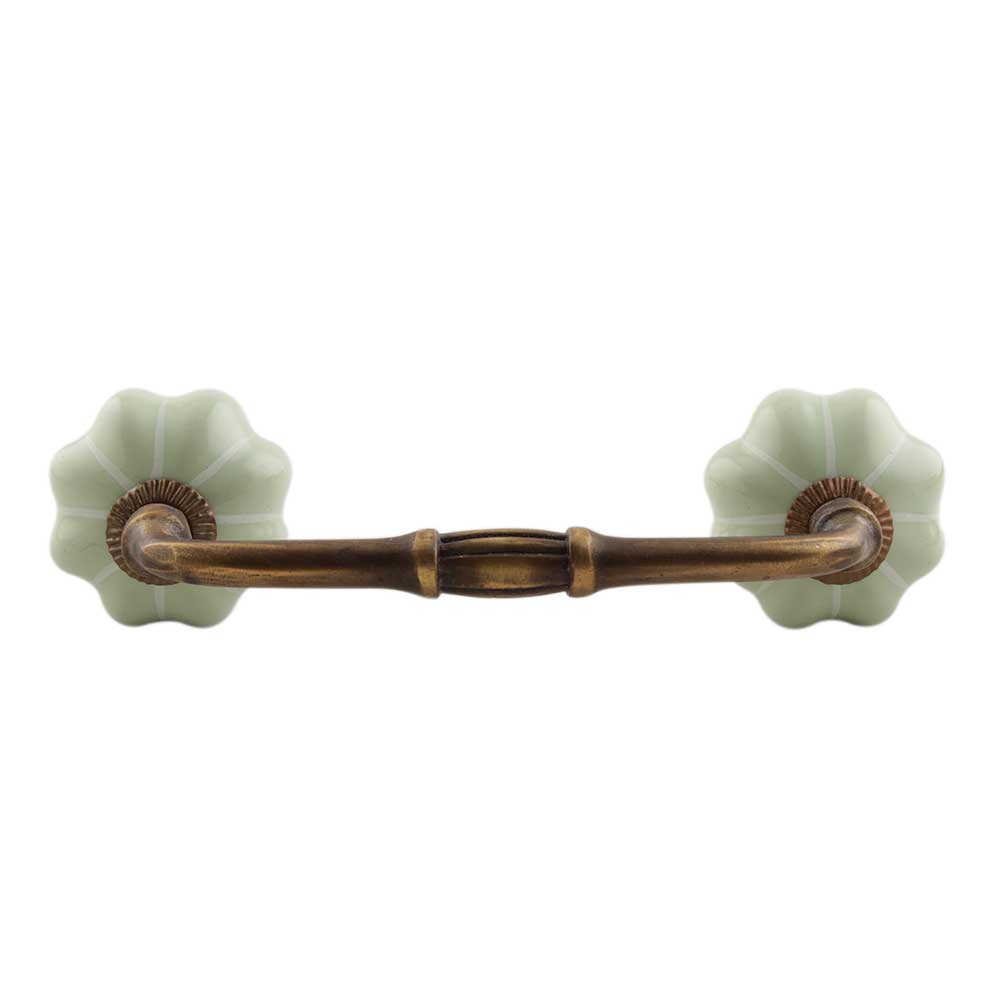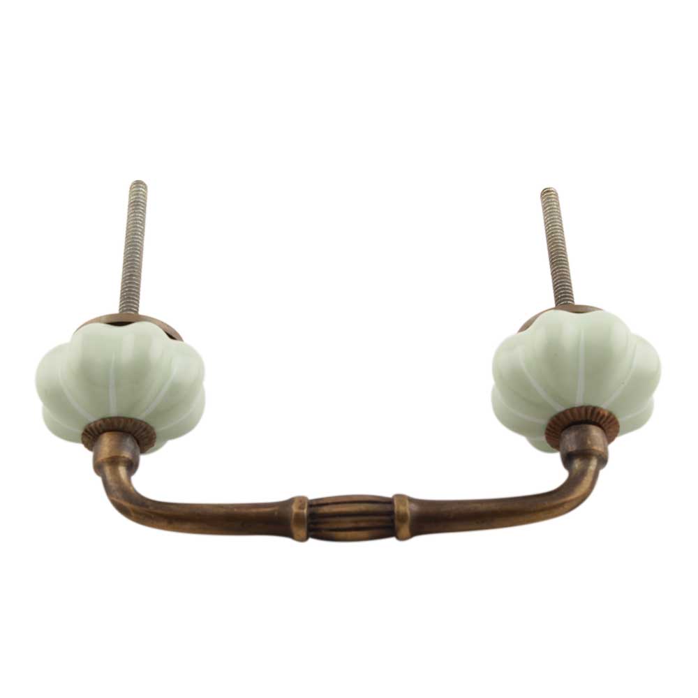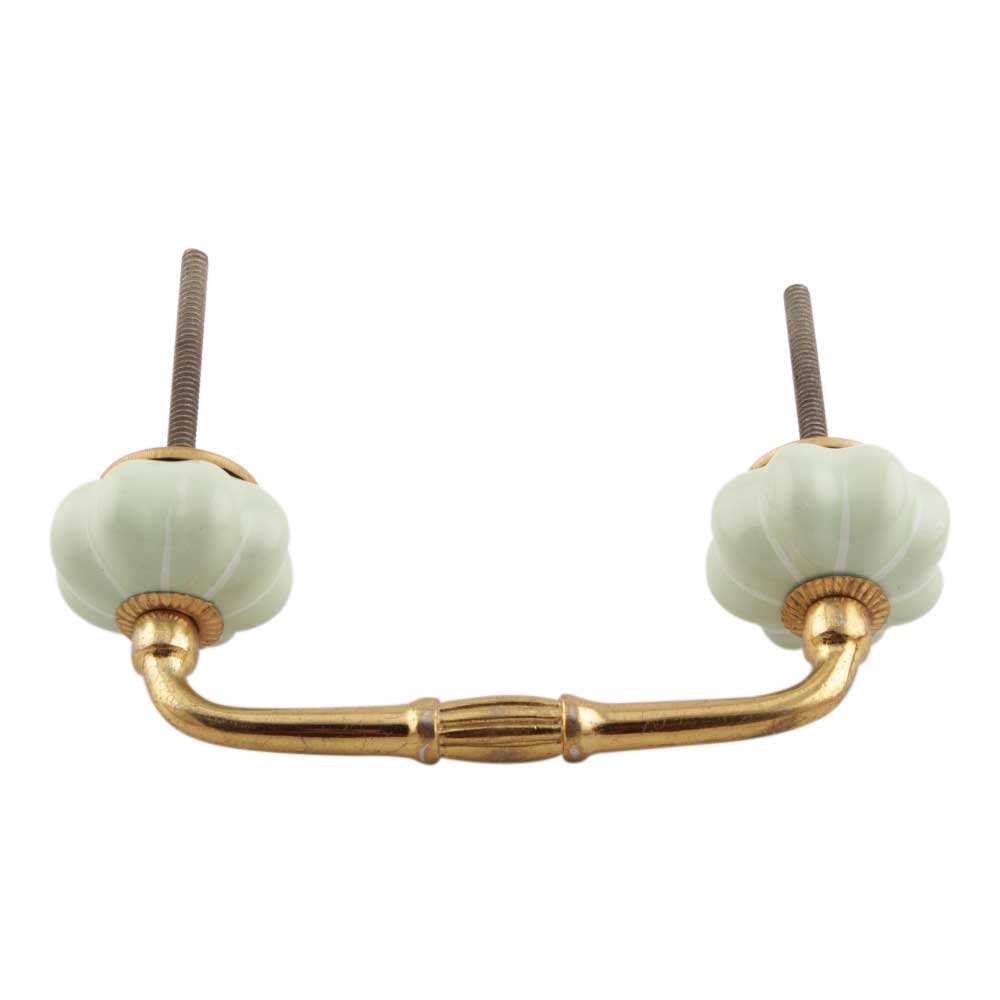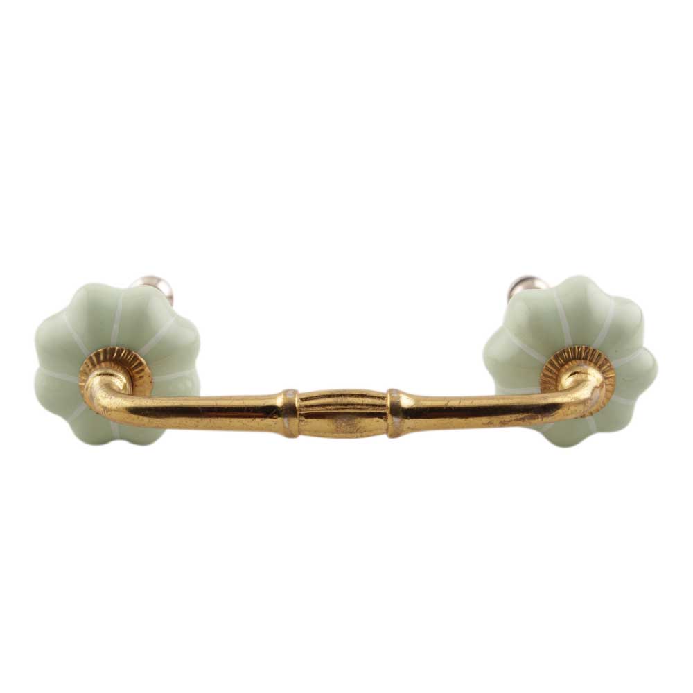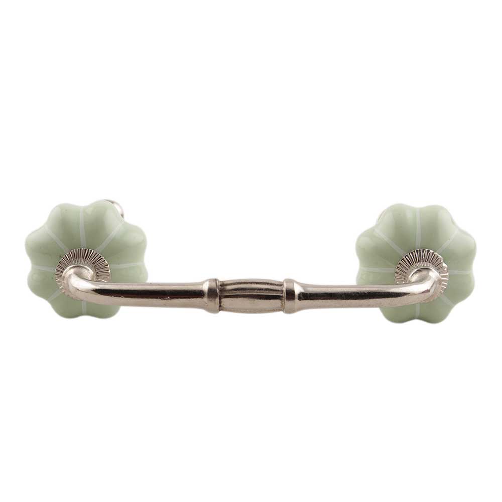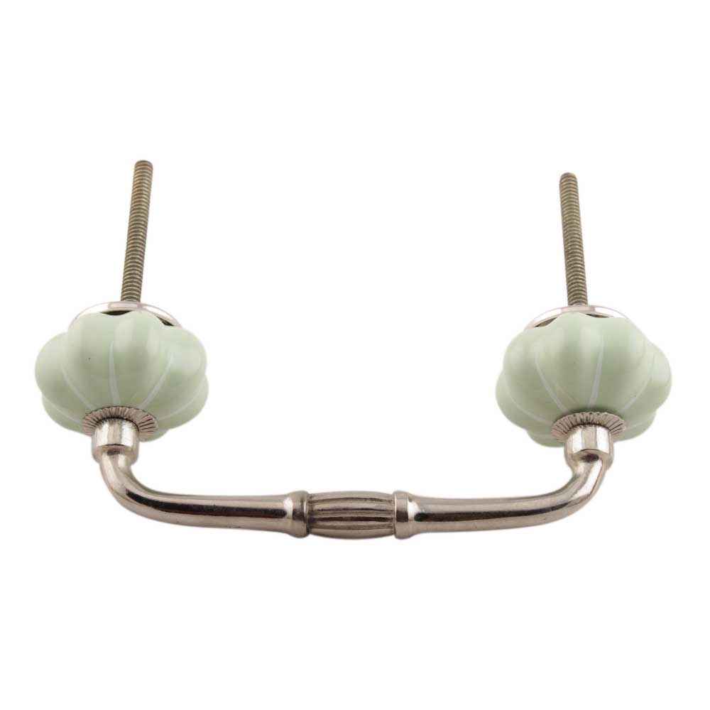 Light Green With Silver Line Medium Melon Ceramic Bridge Handle. Ideal for Drawer, Dresser, Cabinet, Wardrobe, Cupboard and Almirah etc.