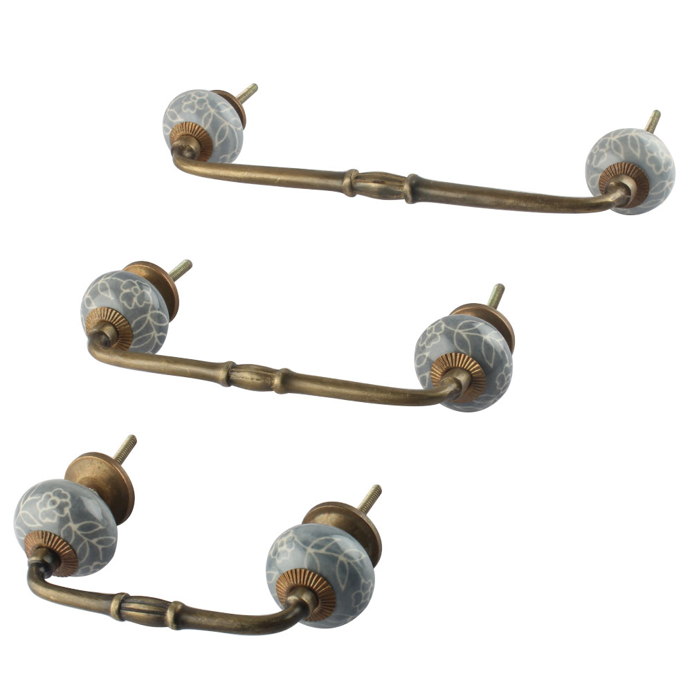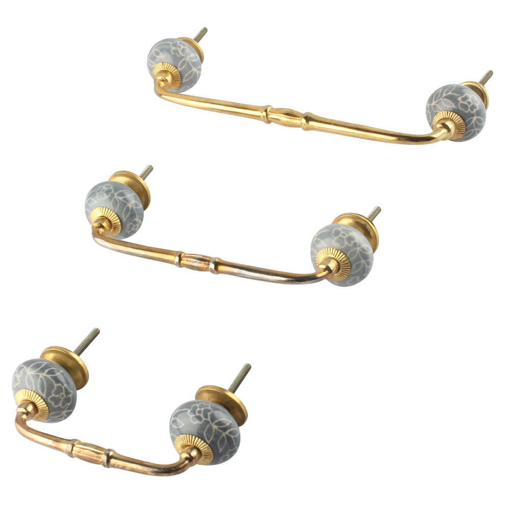 Light Grey Ceramic Dresser Bridge Handle. Ideal for Drawer, Dresser, Cabinet, Wardrobe, Cupboard and Almirah.
