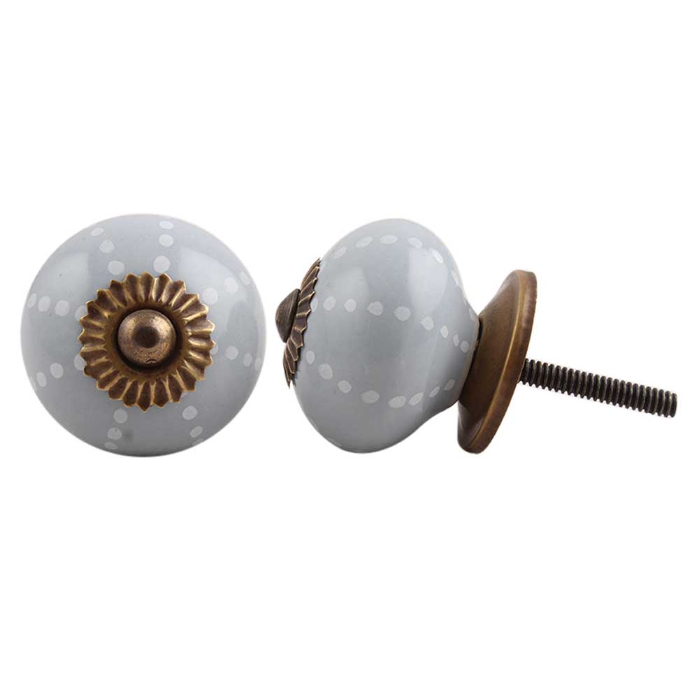 Light Grey Dot Ceramic Dresser Knob, kitchen drawers, dining room, bed room, chest drawers, dressing tables, almirahs, etc.