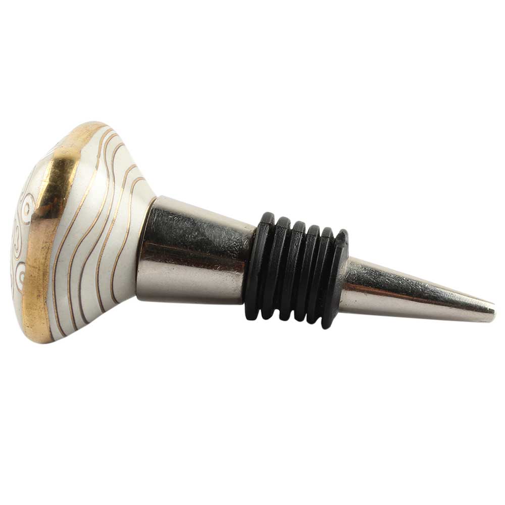 Light Grey Square Ceramic Wine Stopper. Zinc Alloy Wine Bottle Stopper with Attractive Jute Bag Packaging.