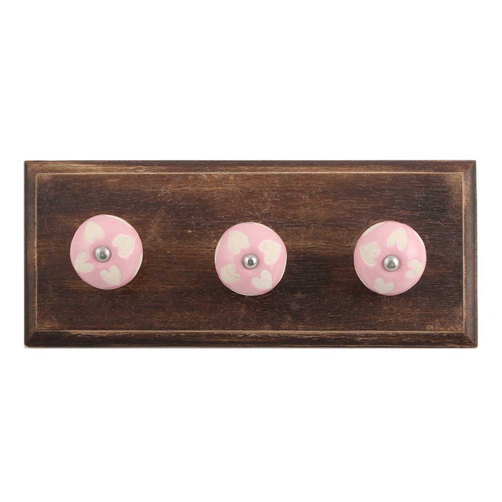 Light Pink Etched Ceramic Wooden Hook. A Perfect Complement to the Soft Tone of the Wood are these White Traditional Hat & Coat Hook Made of Genuine Porcelain and Brass. It can be use to Hang Jewellery, Leashes, Towels, Scarves, Light Weight Sweaters, Caps Etc.