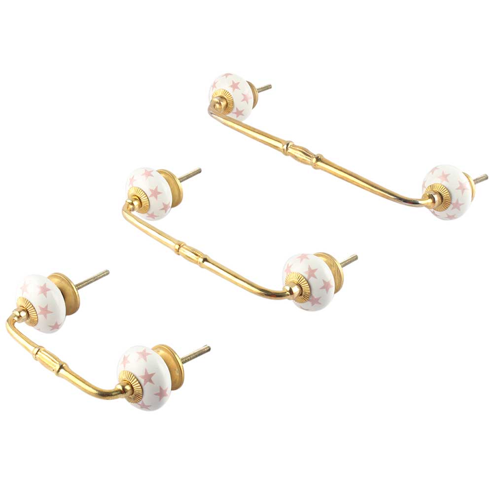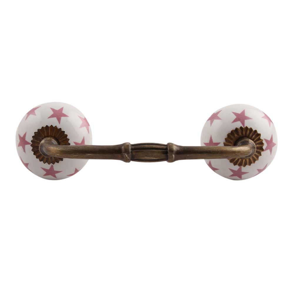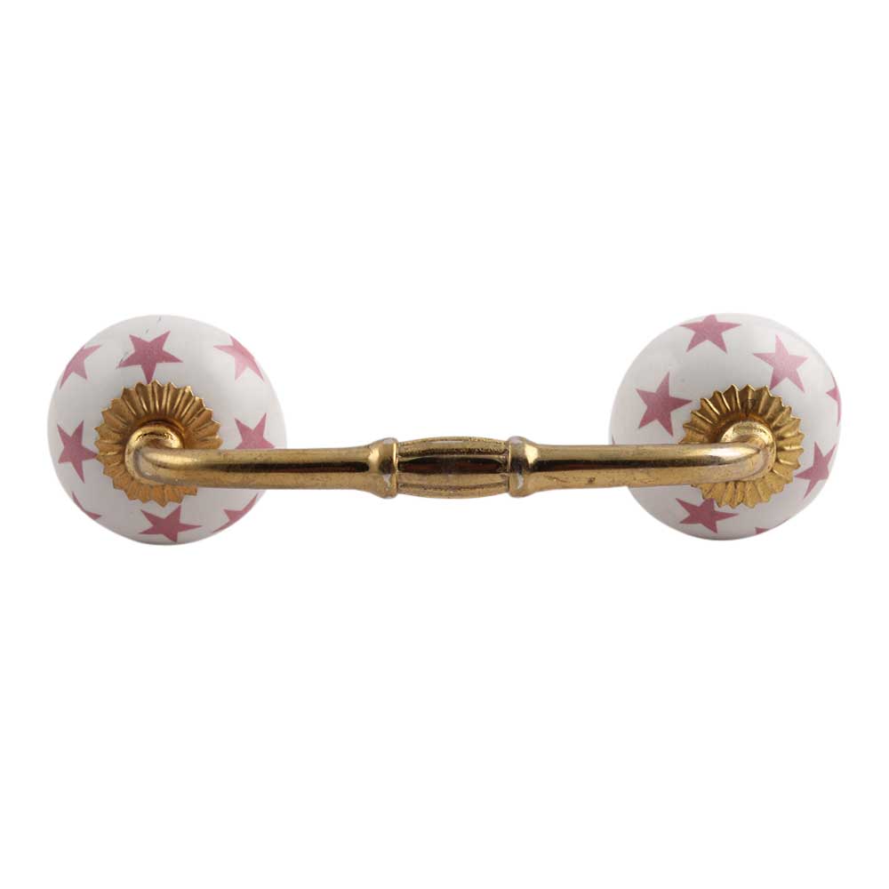 Light Pink Star Ceramic Bridge Handle. Ideal for Drawer, Dresser, Cabinet, Wardrobe, Cupboard and Almirah.