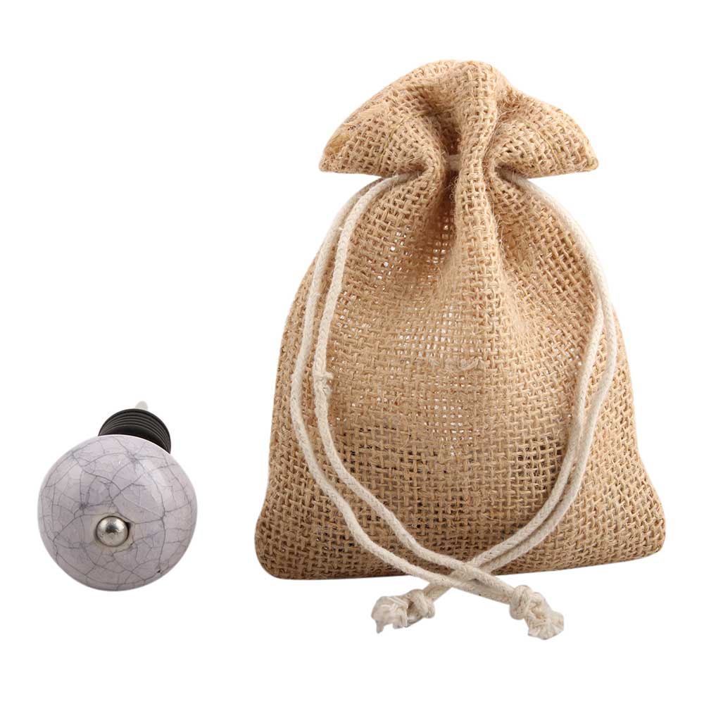 Light Purple Crackle Ceramic Wine Stopper.zinc alloy wine bottle stopper with attractive Jute Bag Packaging.