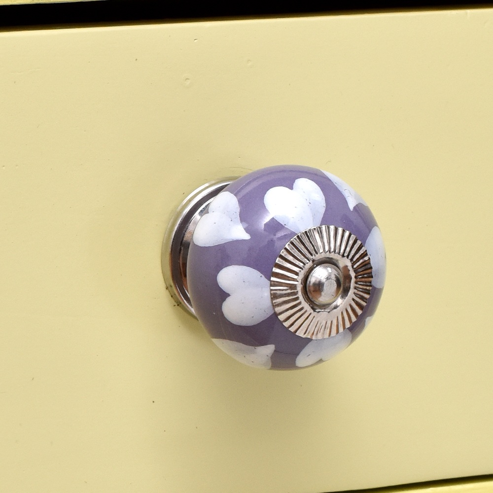 Light Purple Heart Ceramic Knob. Ideal for kitchen cabinets, kitchen drawers, dining room, bed room, chest drawers, dressing tables, almirah