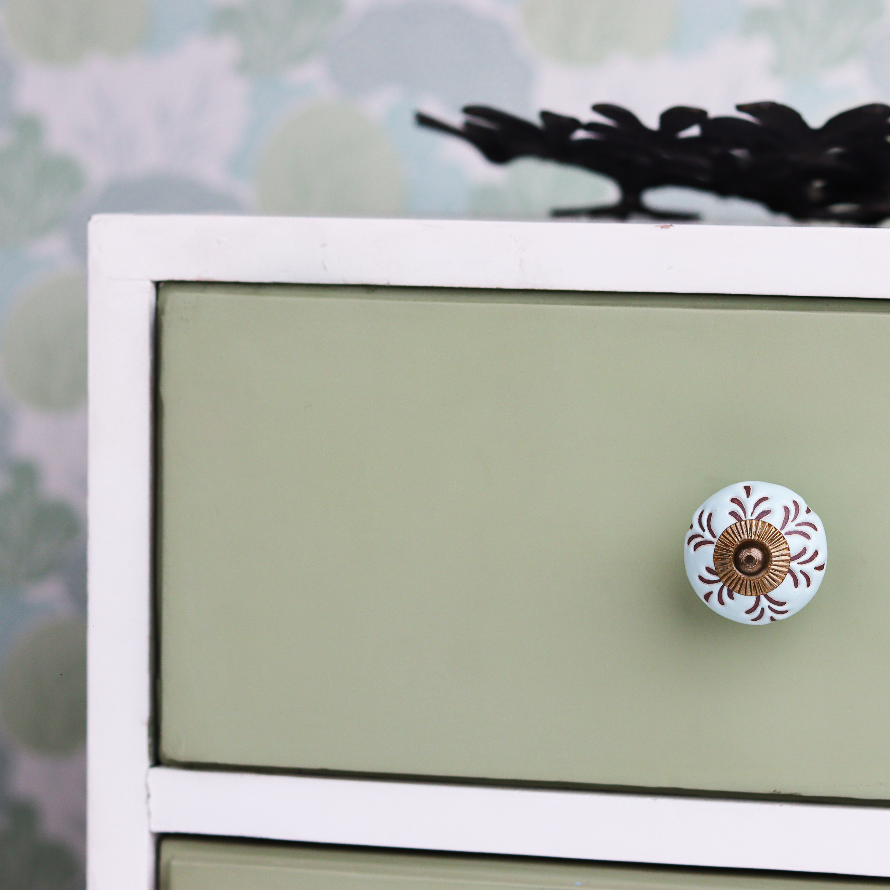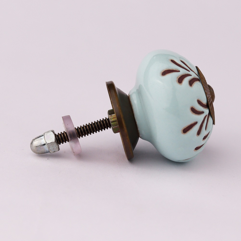 The detailed leaf etching on the ceramic surface provides a textured, organic appearance, while the soft sage green hue introduces a subtle, peaceful tone to your furniture. This blend of intricate design and soothing color makes these knobs a fantastic choice for various interior styles.