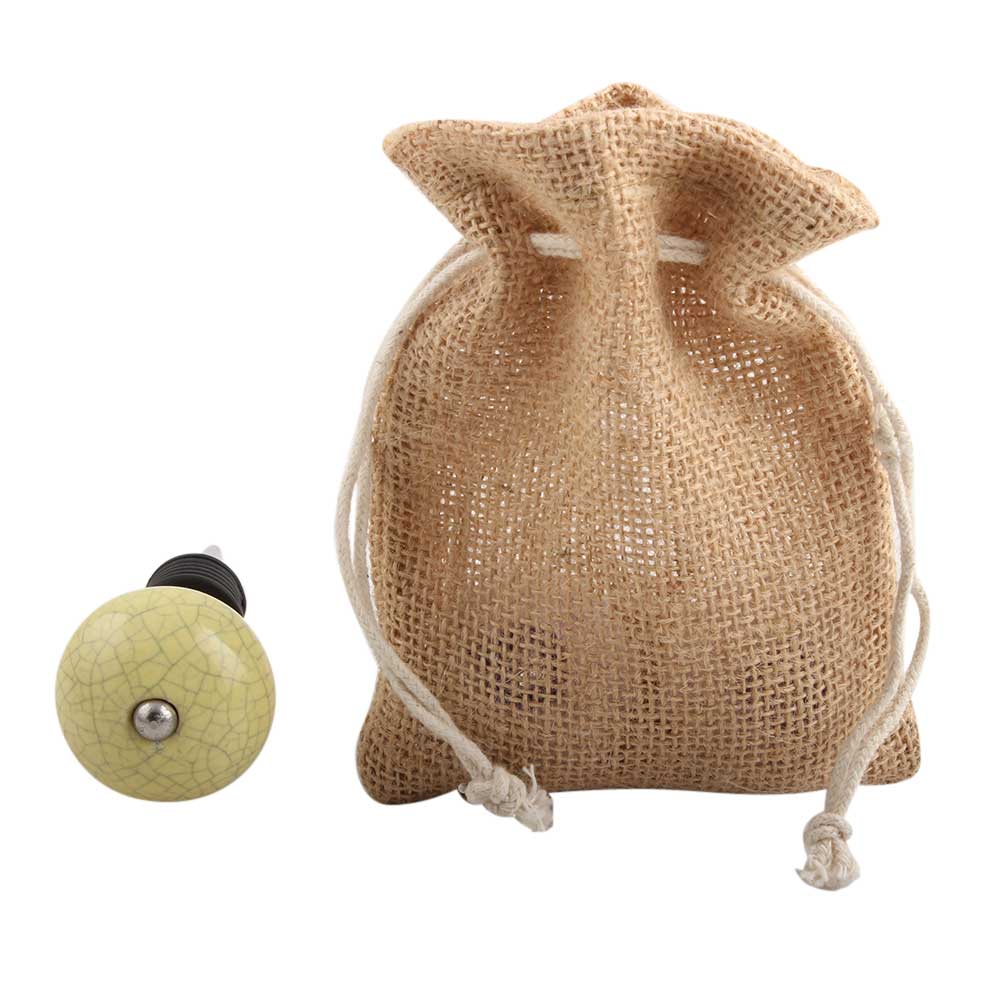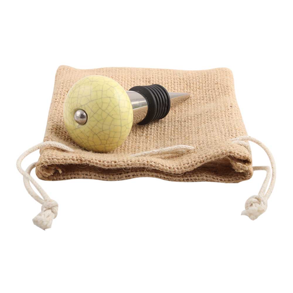 Light Yellow Crackle Ceramic Wine Stopper.zinc alloy wine bottle stopper with attractive Jute Bag Packaging.