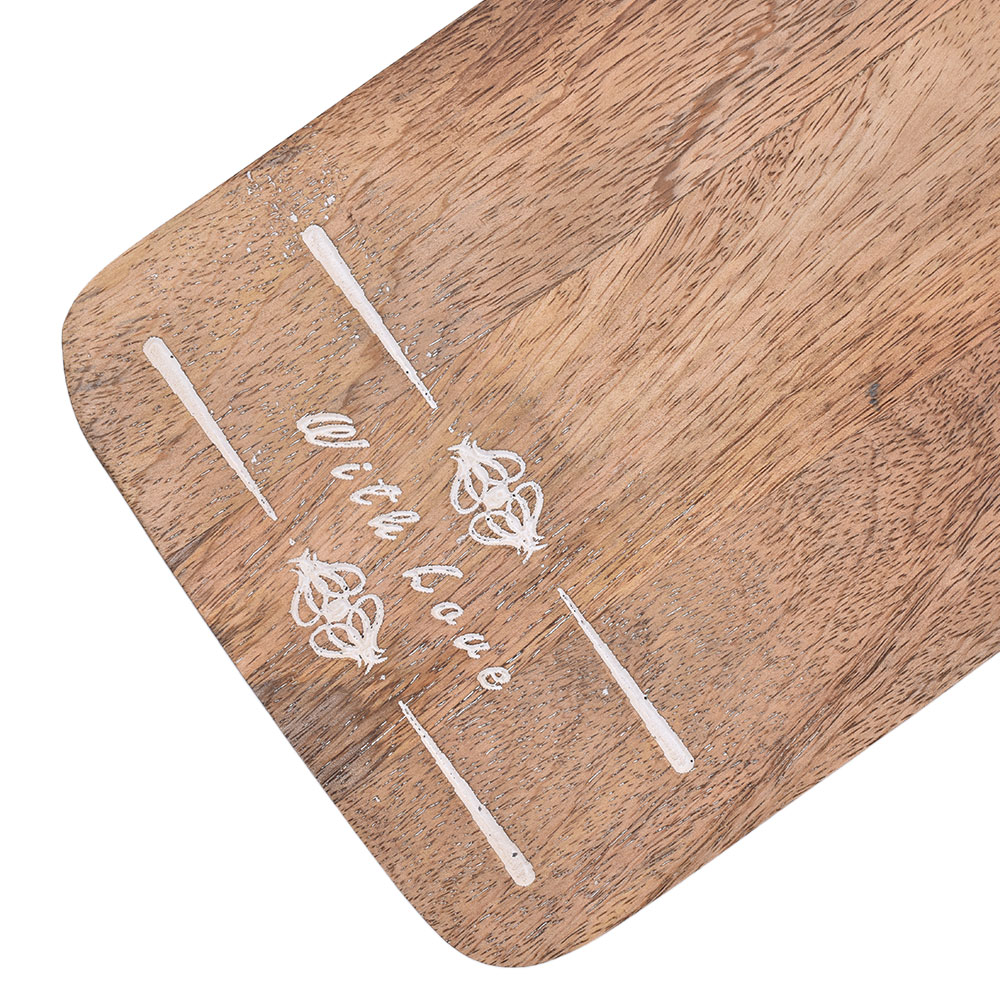 The handmade wooden cutting board is the most environmentally friendly chopping board with a comfortable handle for better grip while cutting or serving. This wood-cutting board can withstand dampness, which provides longevity and helps it keep its form. It is portable and easy to clean. This wooden cutting board is resistant to being scratched by sharp blades. It is bacterial-proof and secure to use. It is perfect for many tasks, including dicing, chopping, and slicing cheese, fruits, and vegetables. It is manageable and light enough to serve as a serving board. It is simple to store or display in the kitchen due to its compact form. It has a lovely handle that makes it easier to hold.