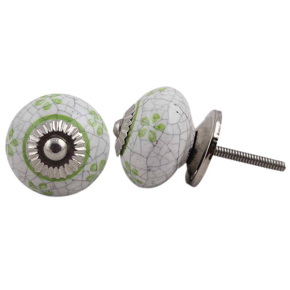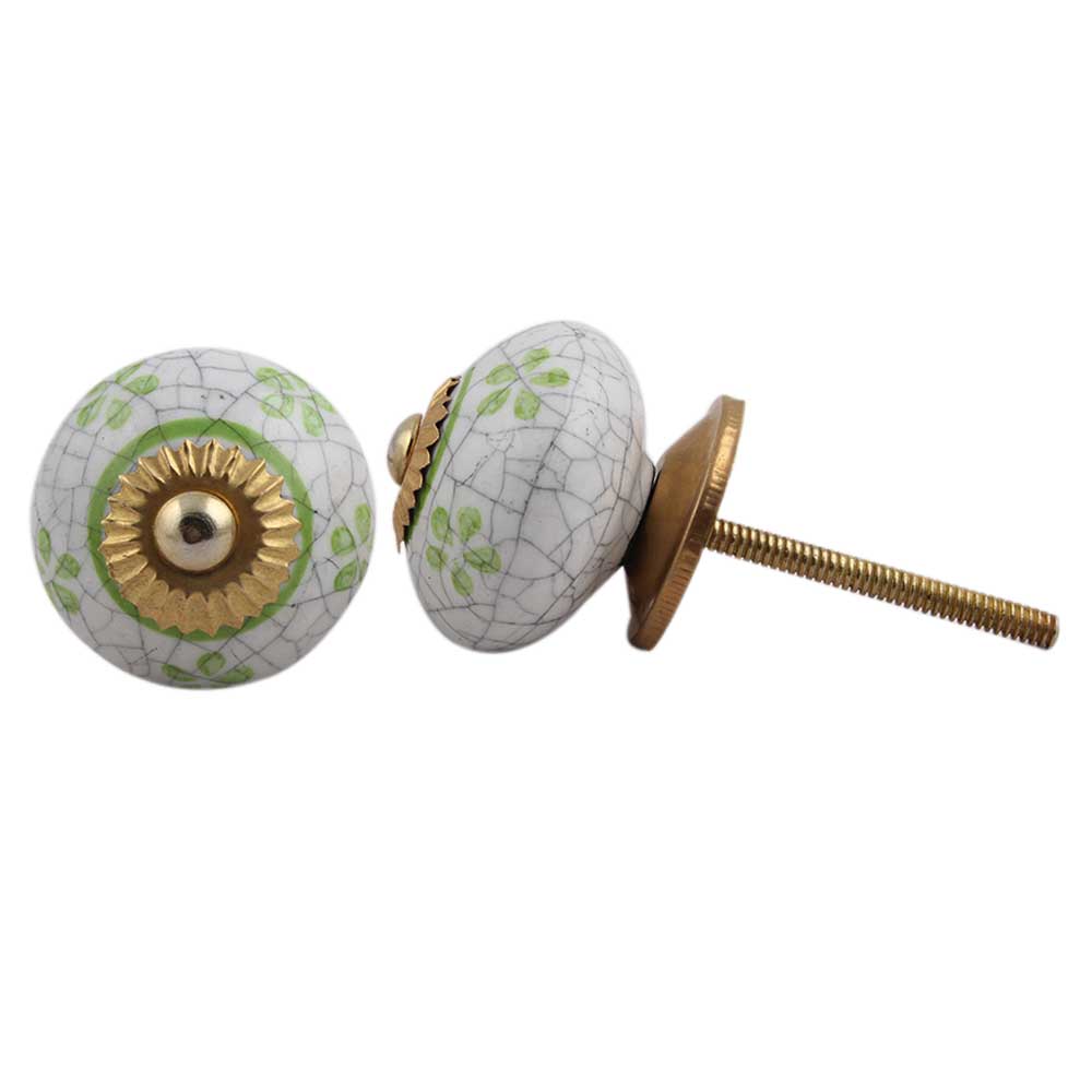 Lime Floral Crackle Ceramic Dresser Knob. Ideal for Drawer, Dresser, Cabinet, Wardrobe, Cupboard and Almirah.
