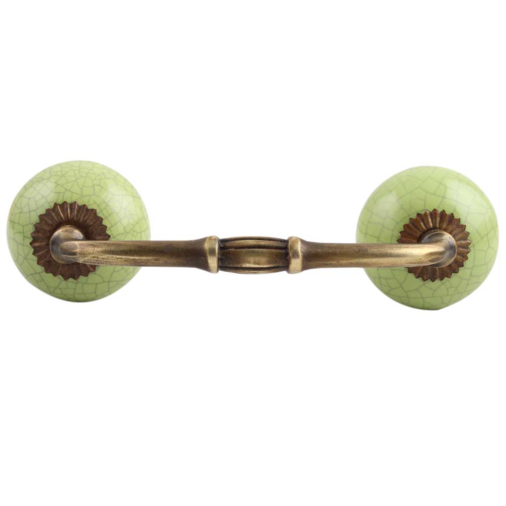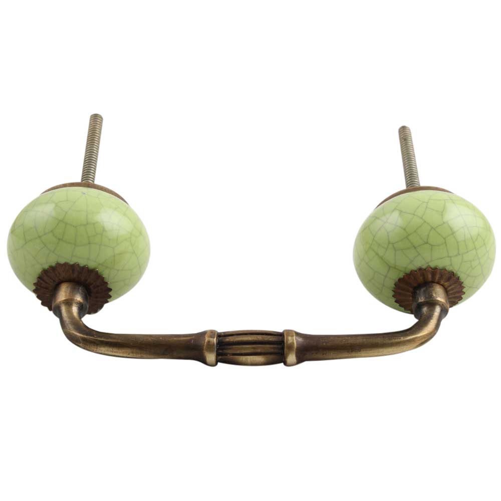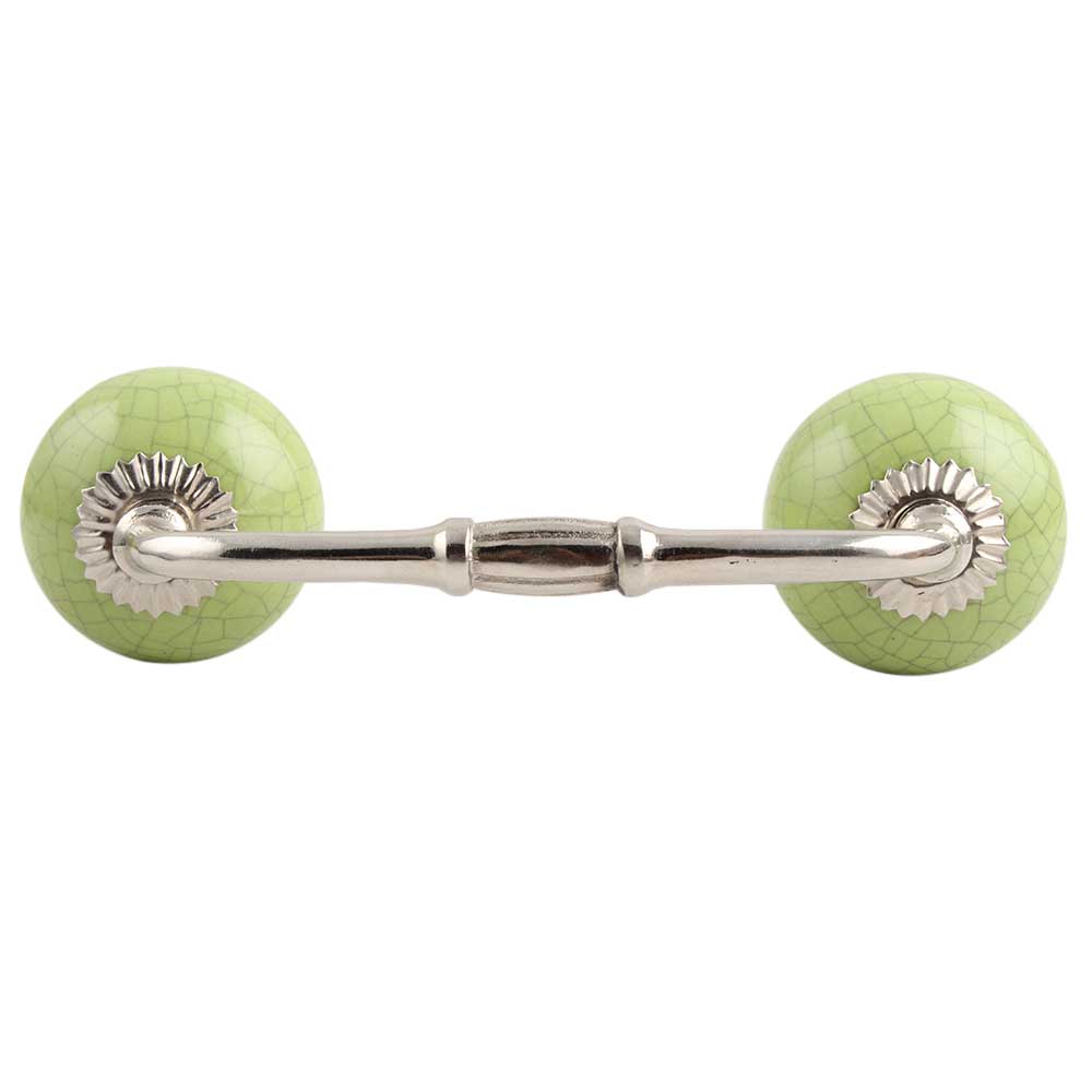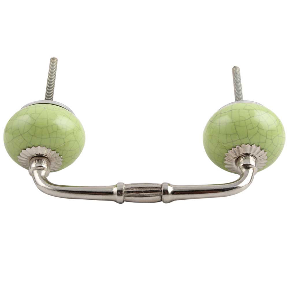 Lime Green Crackle Ceramic Bridge Handle . Ideal for Drawer, Dresser, Cabinet, Wardrobe, Cupboard and Almirah etc.