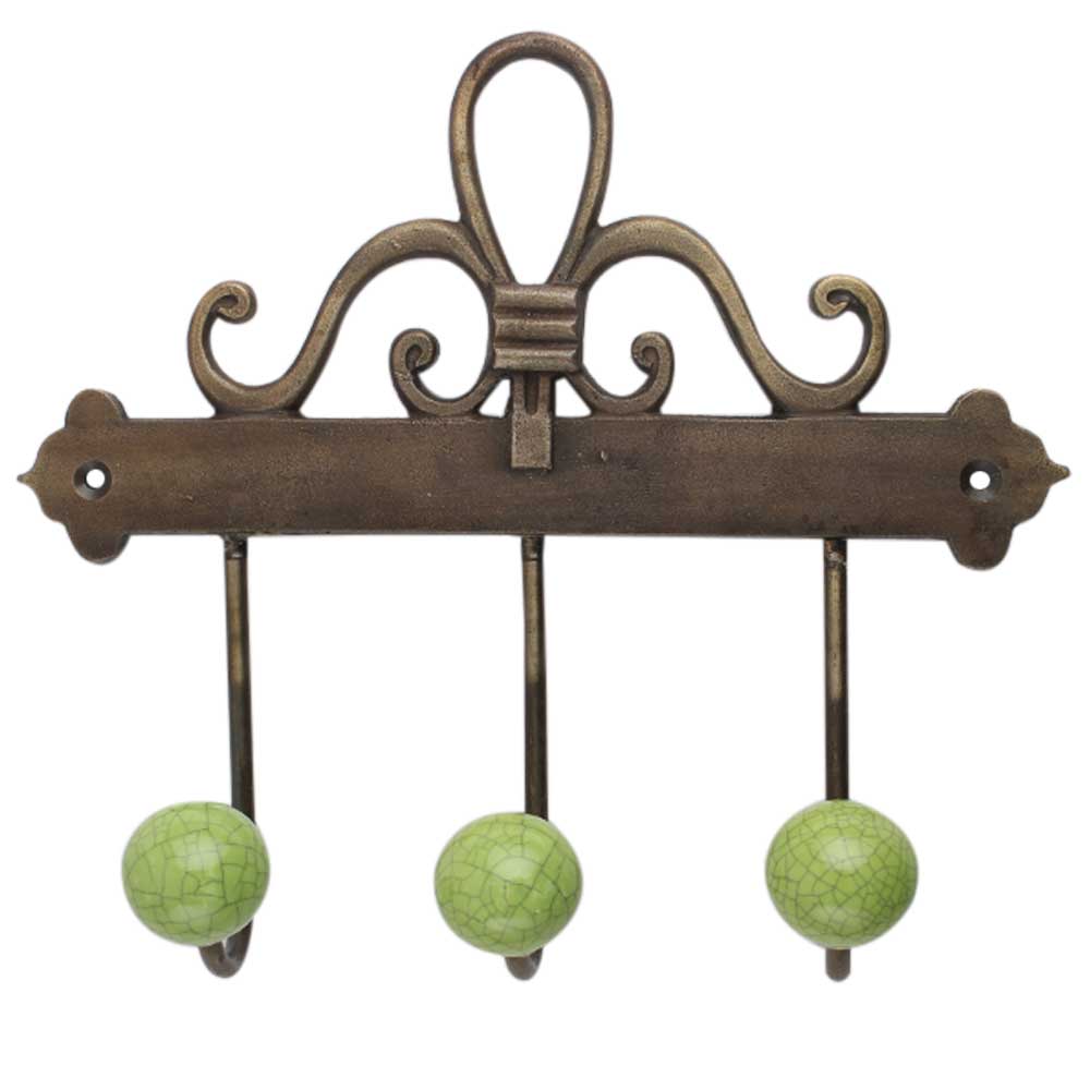 Lime Green Crackle Ceramic Iron Hook. A Perfect Complement to the Soft Tone of the Wood are these White Traditional Hat & Coat Hook Made of Genuine Porcelain and Brass. It can be use to Hang Jewellery, Leashes, Towels, Scarves, Light Weight Sweaters, Caps Etc.