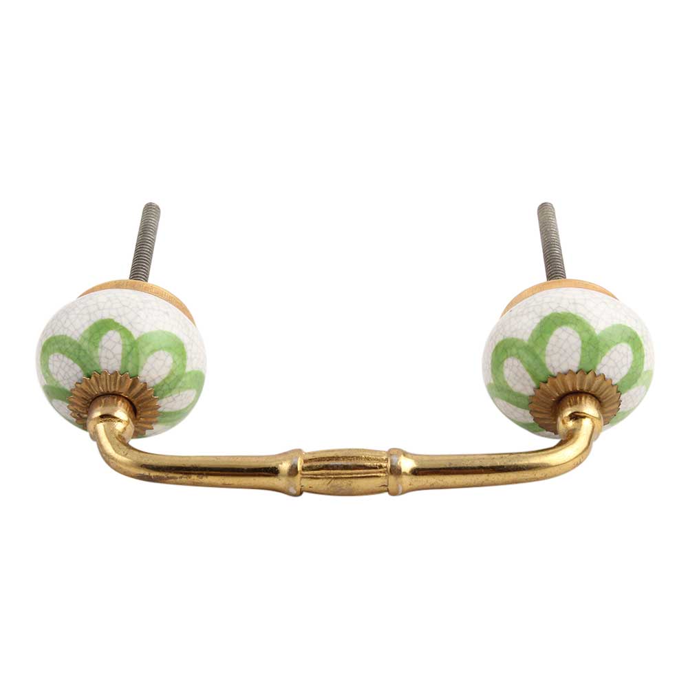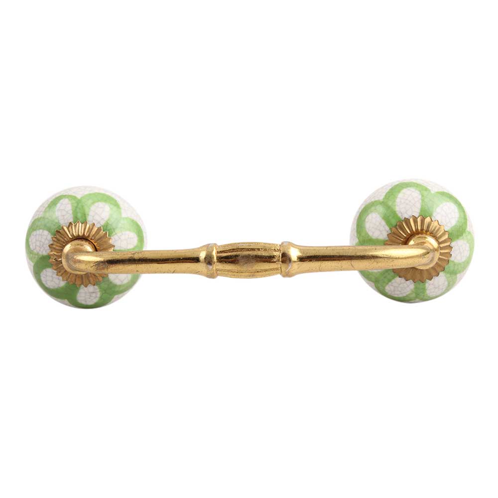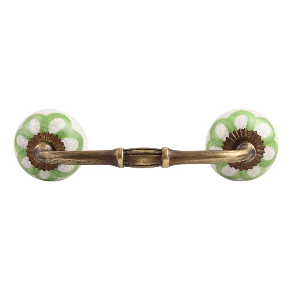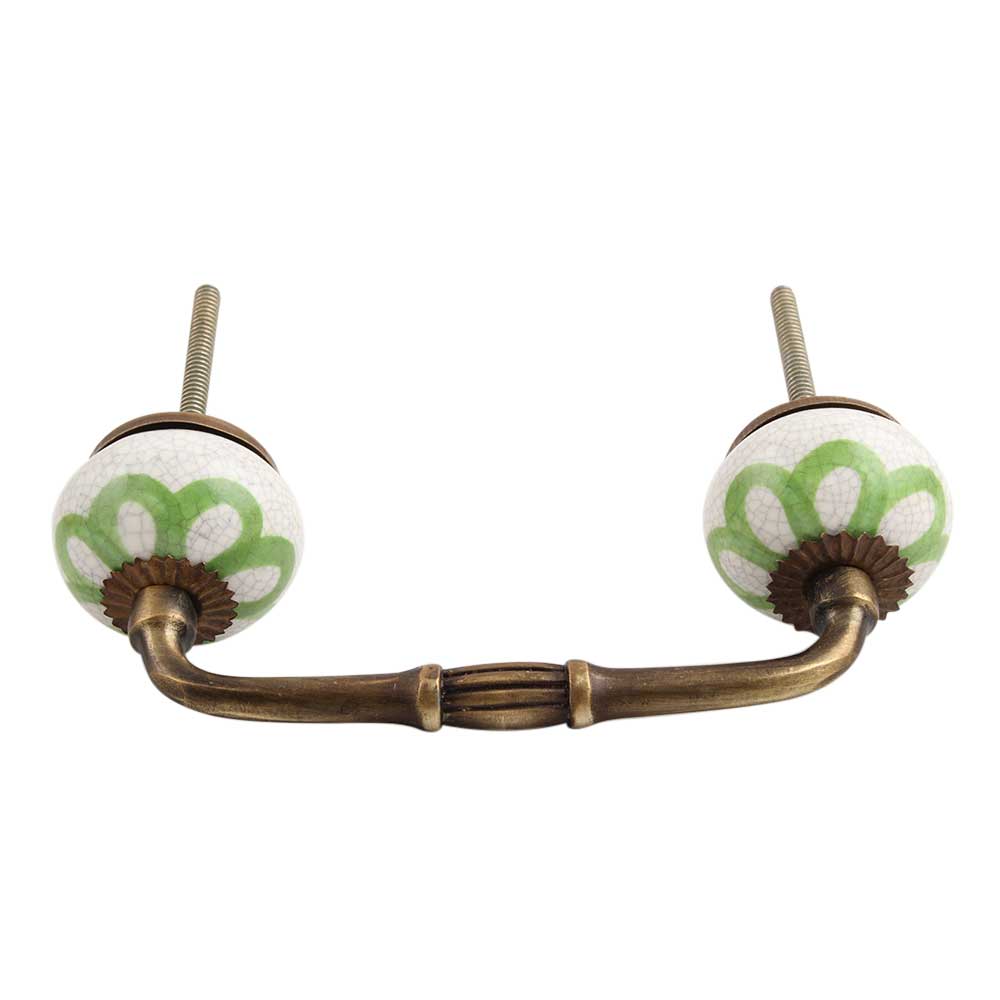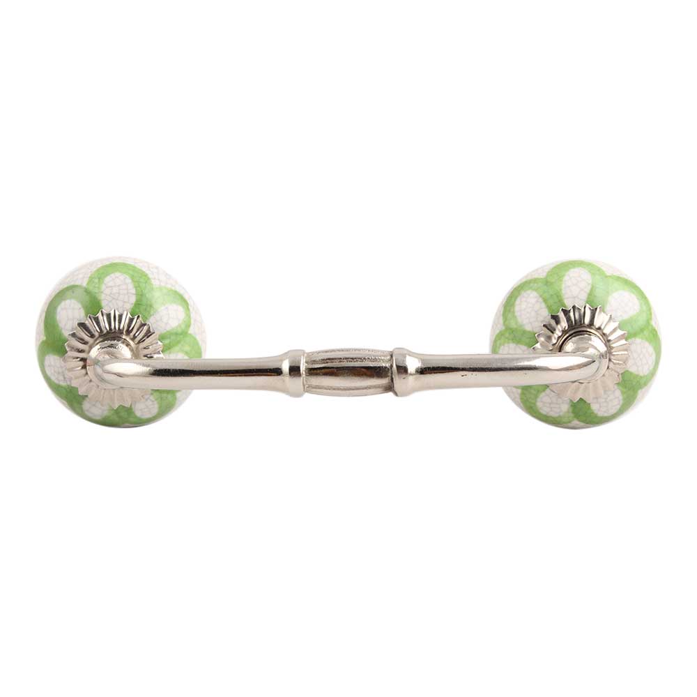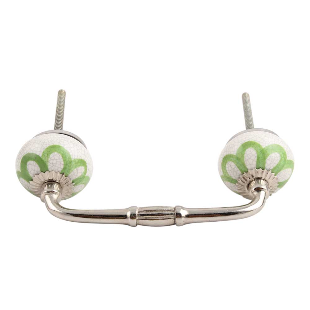 Lime Green Floral Crackle Ceramic Bridge Handle. Ideal for Drawer, Dresser, Cabinet, Wardrobe, Cupboard and Almirah.