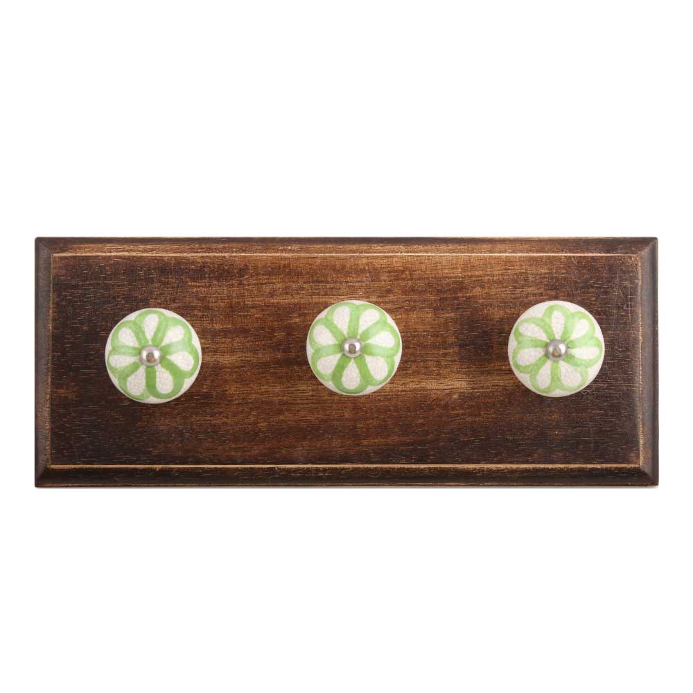 Lime Green Floral Crackle Ceramic Wooden Hook. A Perfect Complement to the Soft Tone of the Wood are these White Traditional Hat & Coat Hook Made of Genuine Porcelain and Brass. It can be use to Hang Jewellery, Leashes, Towels, Scarves, Light Weight Sweaters, Caps Etc.