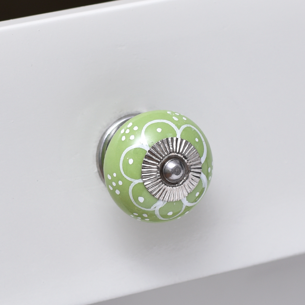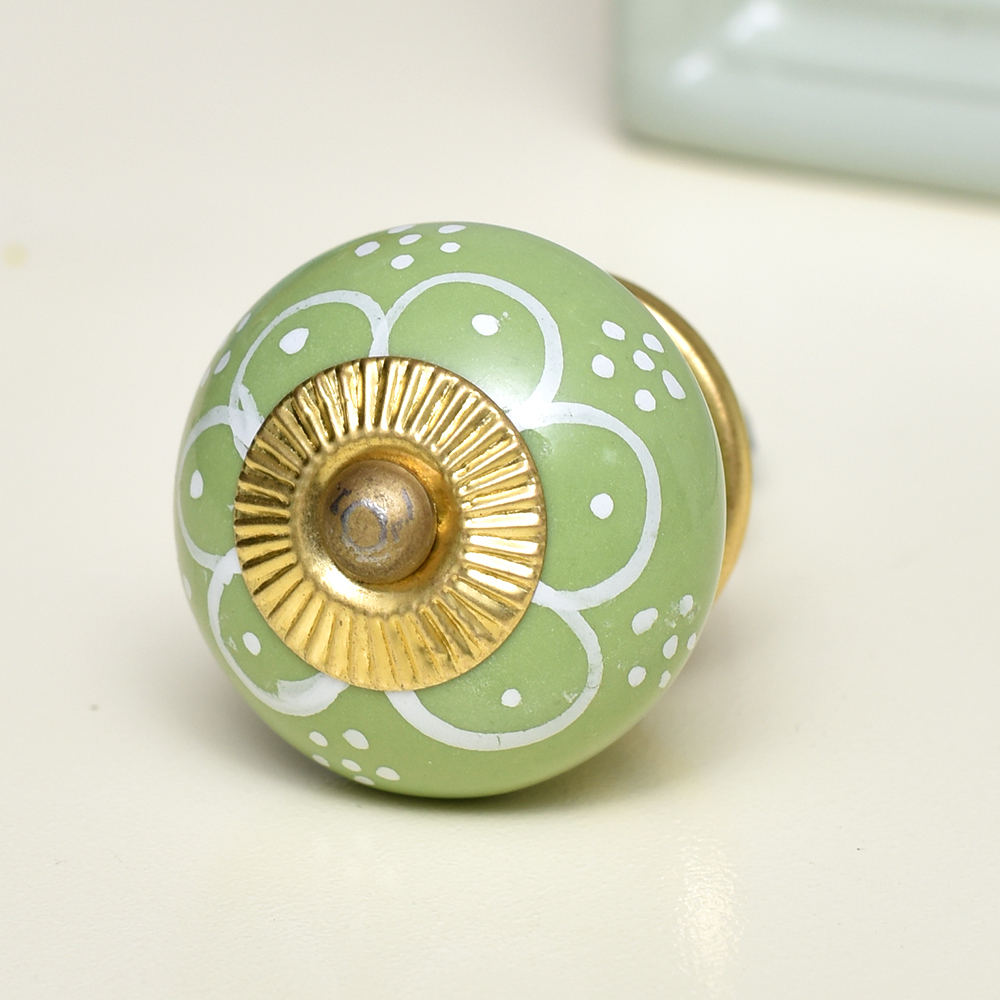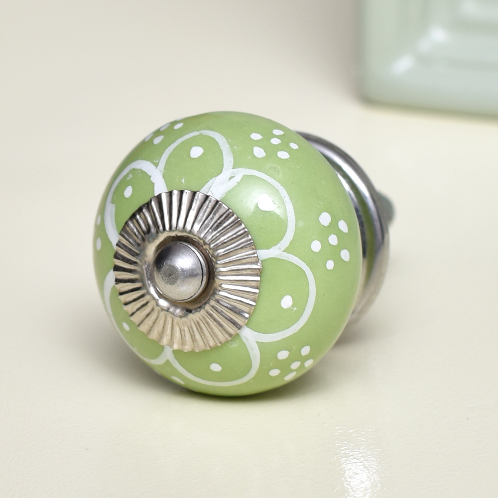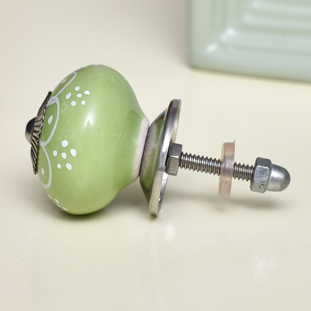 Lime Green Floral ceramic knob. Ideal for kitchen cabinets, kitchen drawers, dining room, bed room, chest drawers, dressing tables, almirah