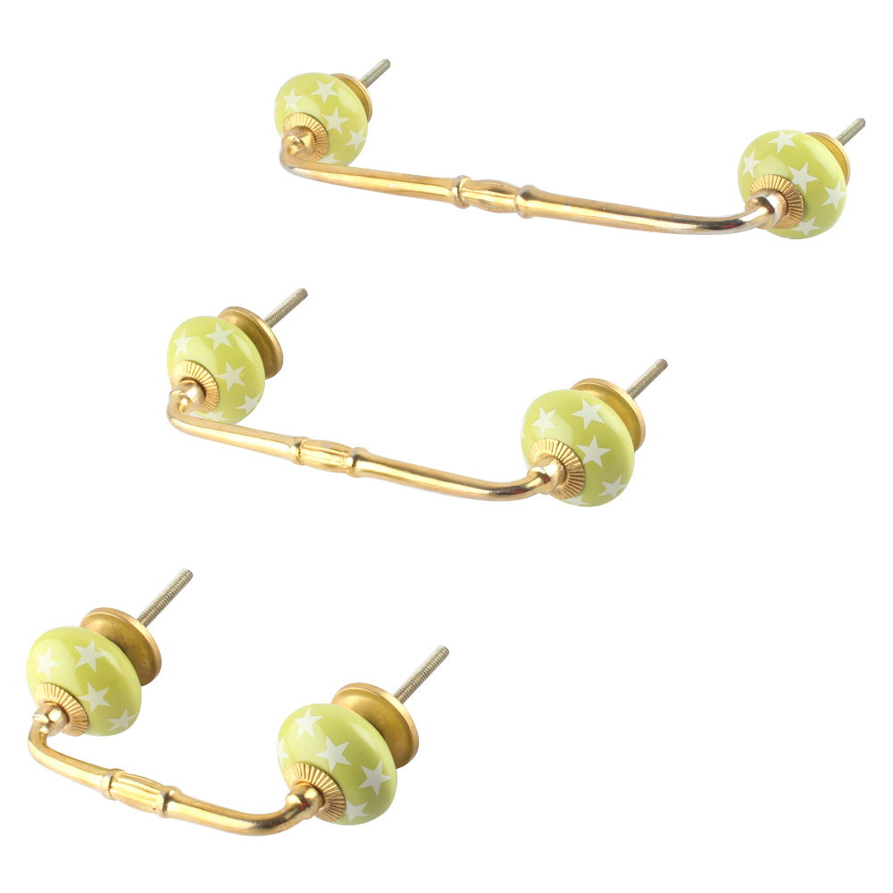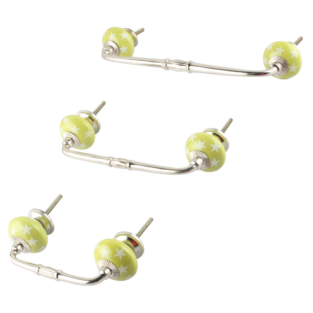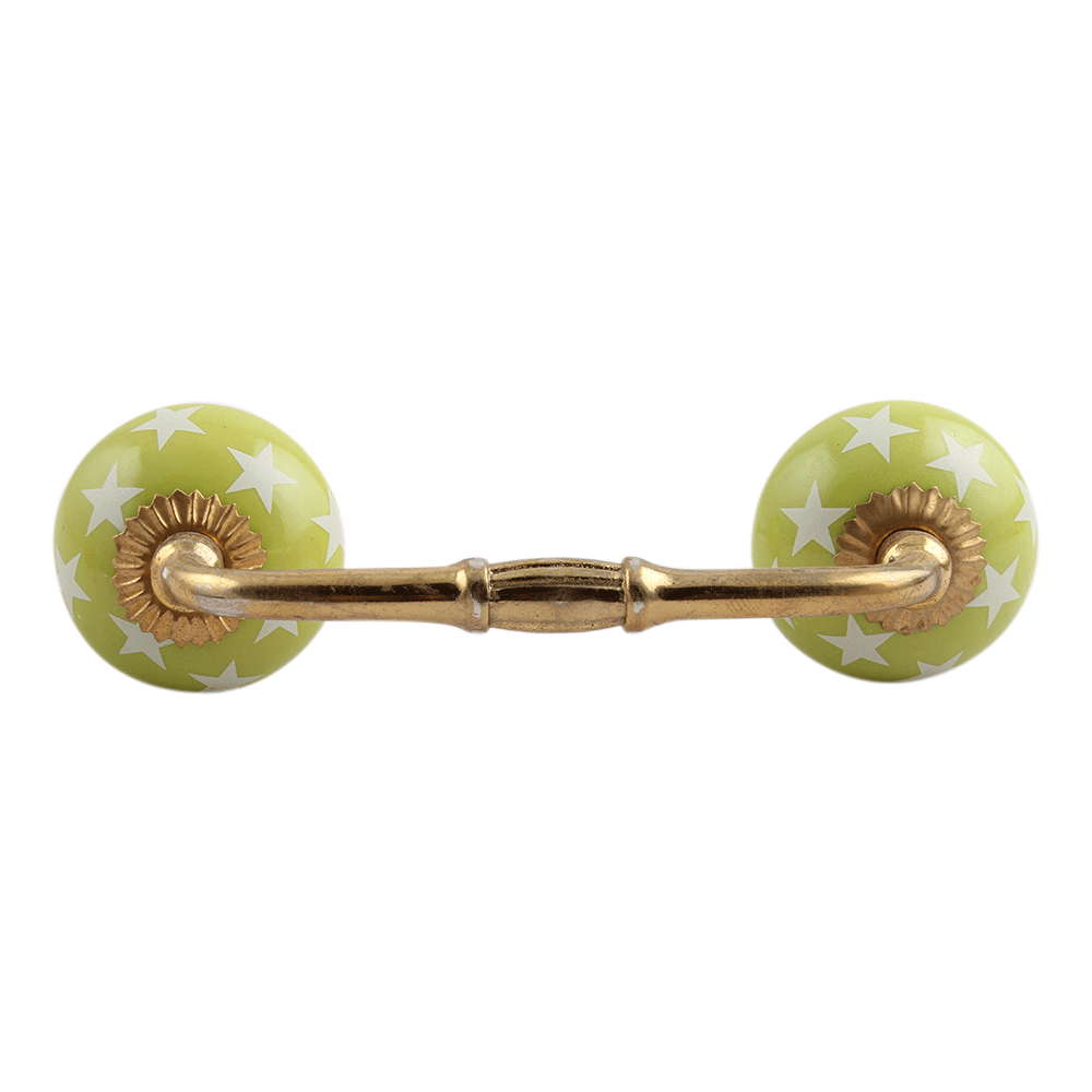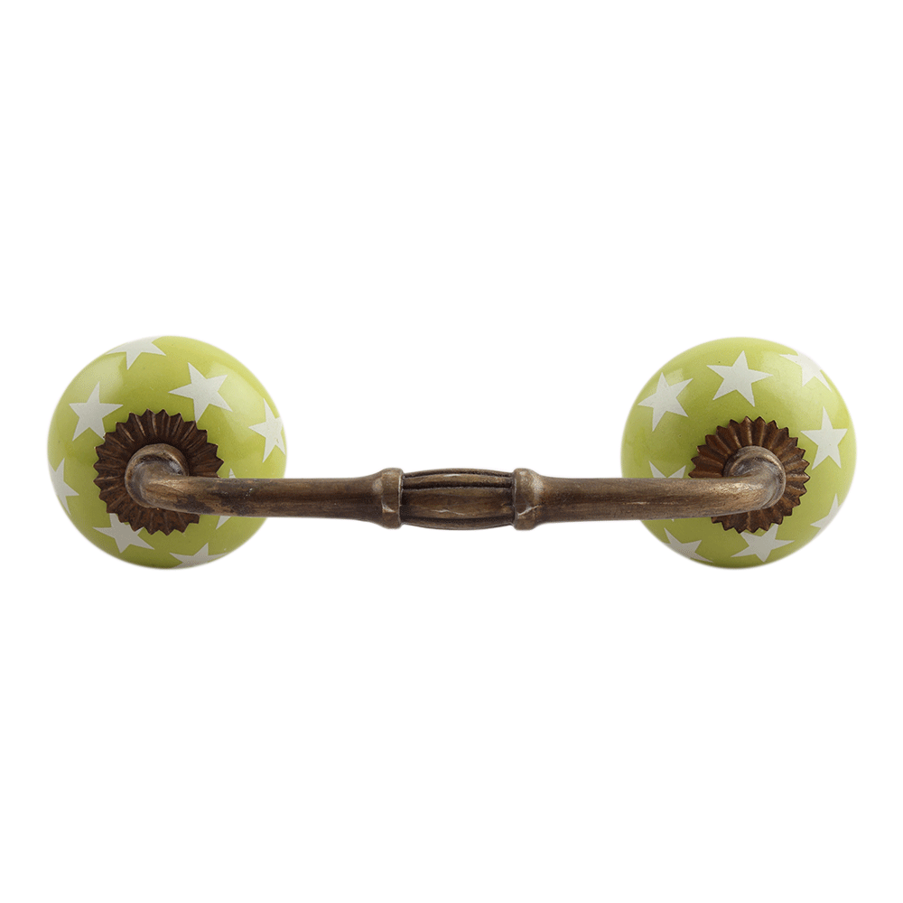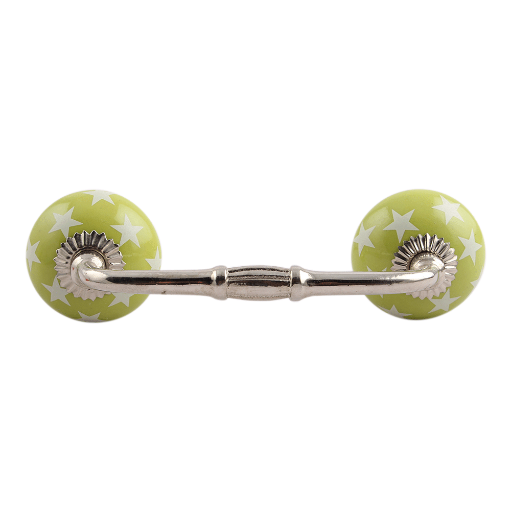 Lime Green Star Ceramic Bridge Handle. Ideal for Drawer, Dresser, Cabinet, Wardrobe, Cupboard and Almirah.