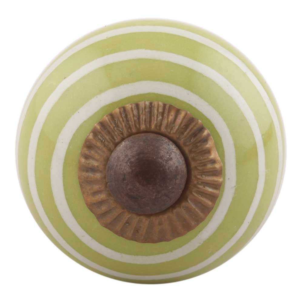Lime Green Striped Small Ceramic Cabinet Knobs. Ideal for Drawer, Dresser, Cabinet, Wardrobe, Cupboard and Almirah.