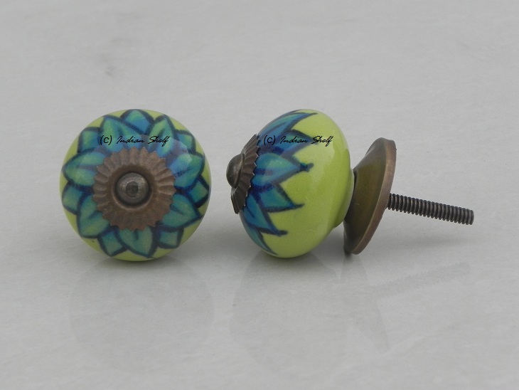 Lime Green Sunflower ceramic knob. Ideal for kitchen cabinets, kitchen drawers, dining room, bed room, chest drawers, dressing tables, almirah