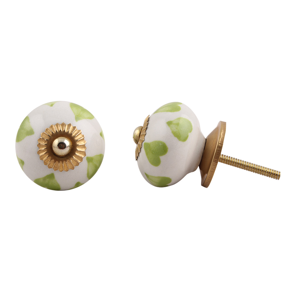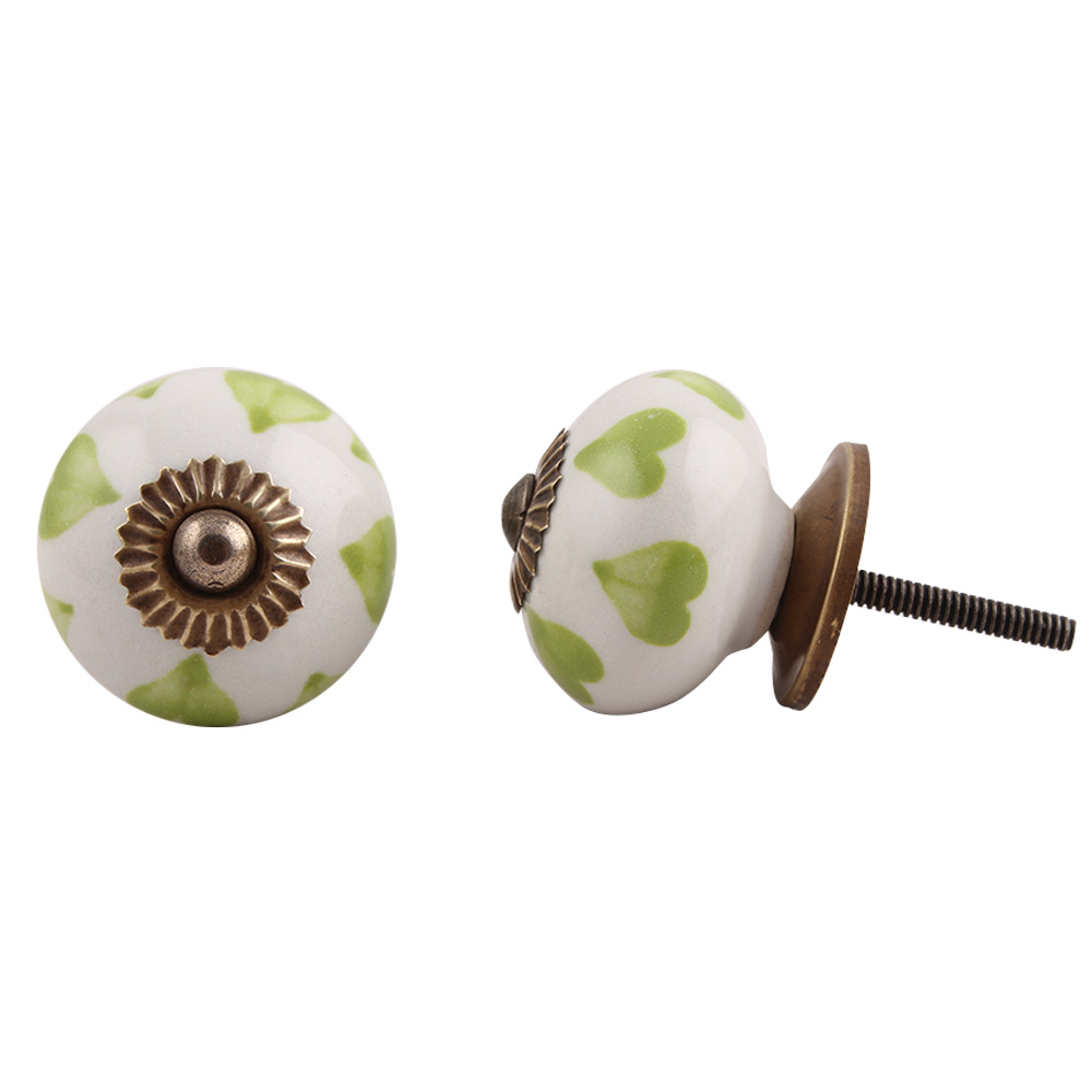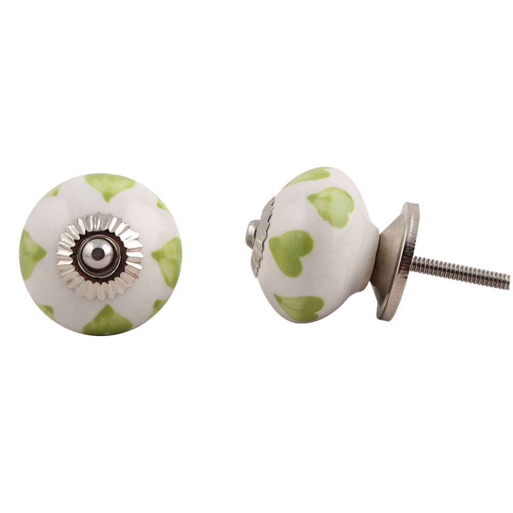 Lime Heart Ceramic Cabinet Knob, kitchen drawers, dining room, bed room, chest drawers, dressing tables, almirahs, etc.