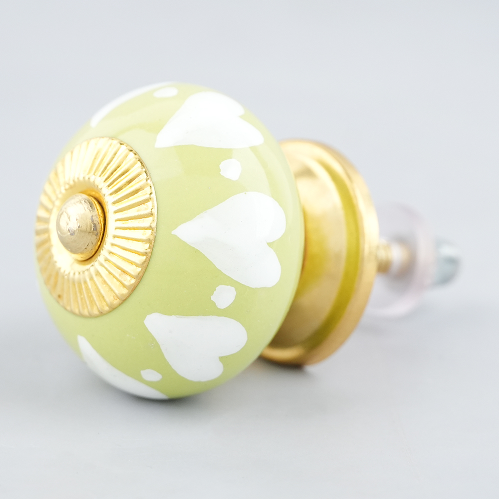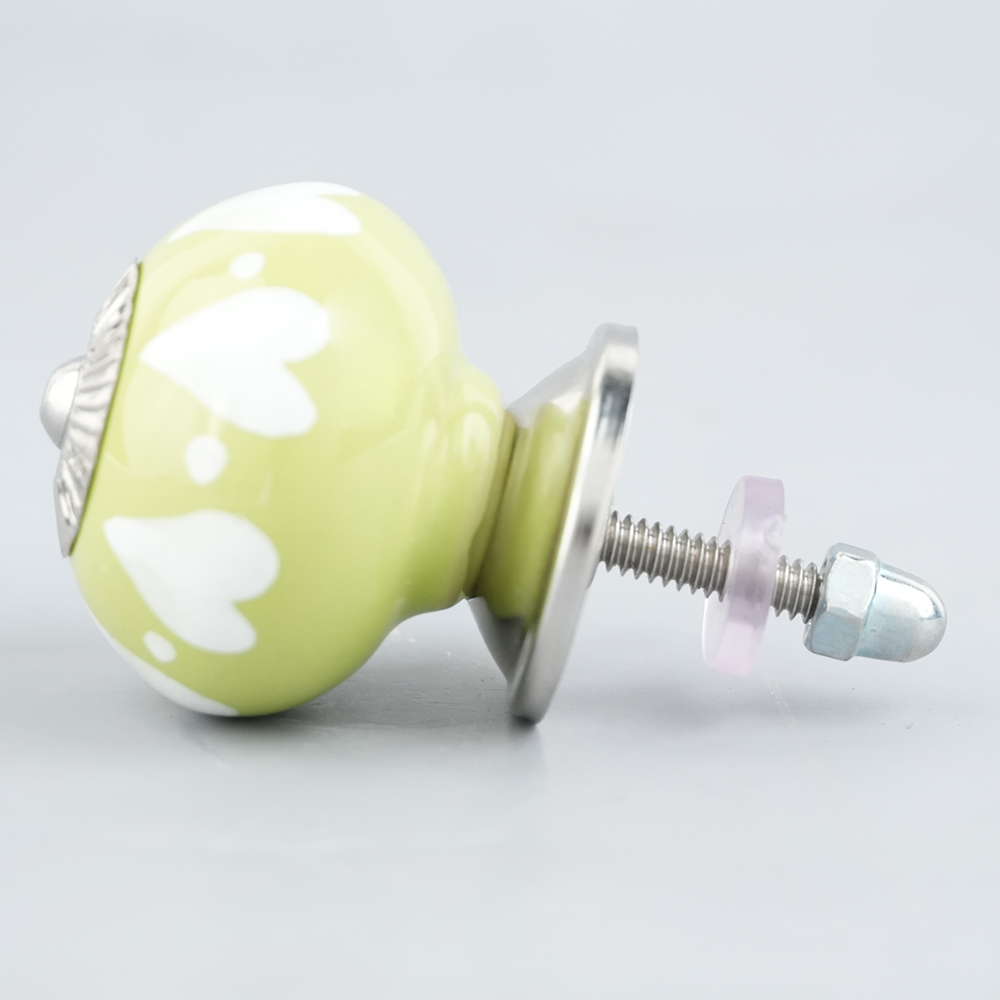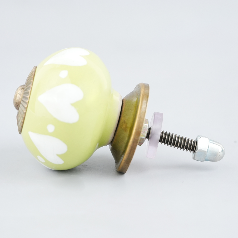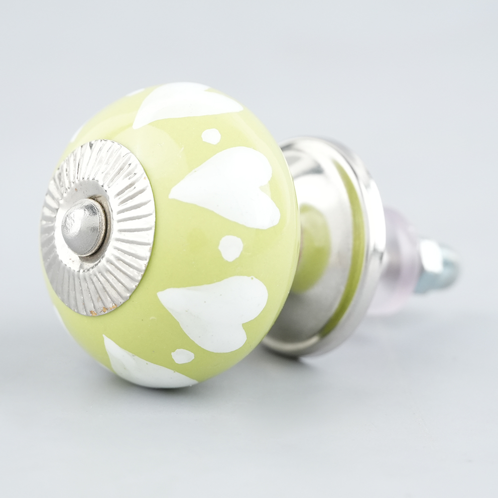 Lime White Heart Ceramic Drawer Knobkitchen drawers, dining room, bed room, chest drawers, dressing tables, almirahs, etc.