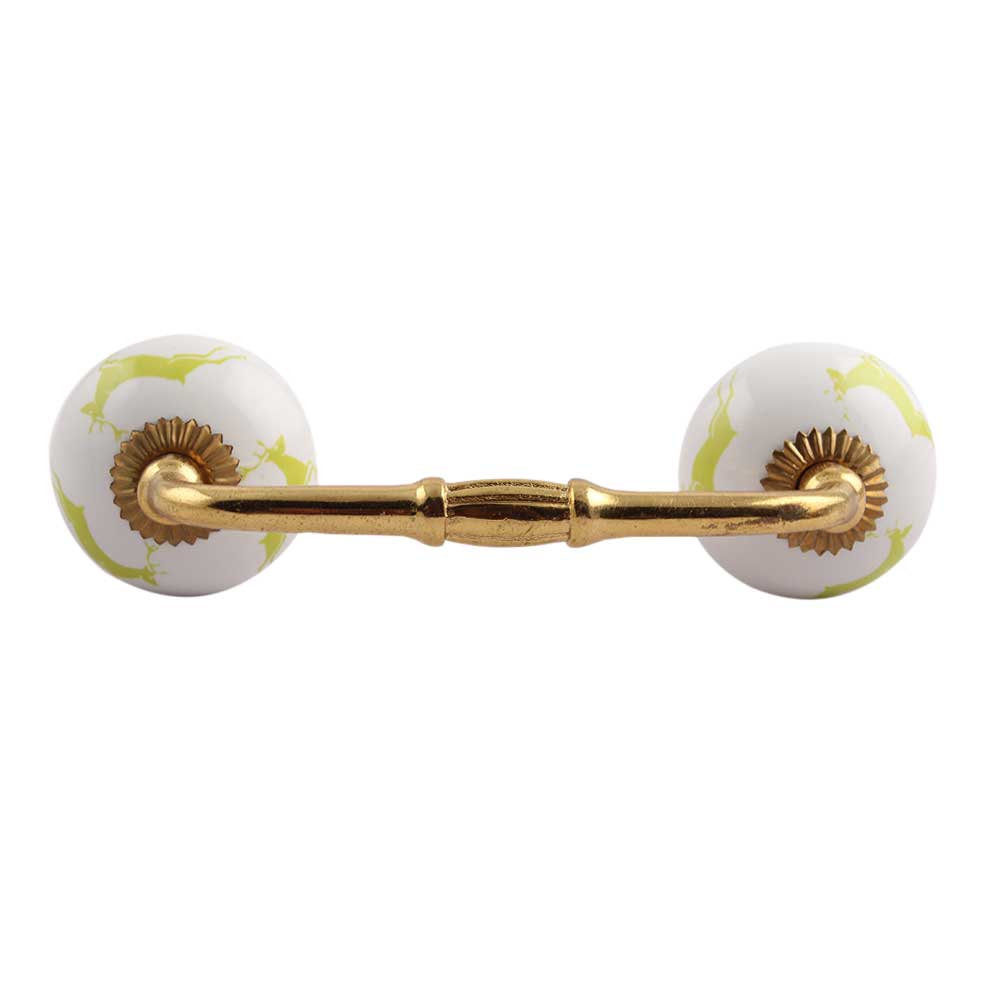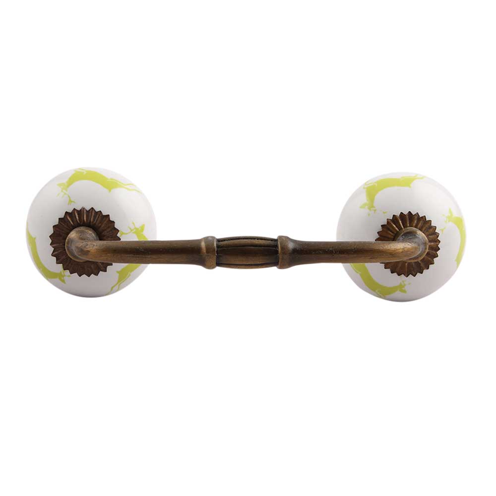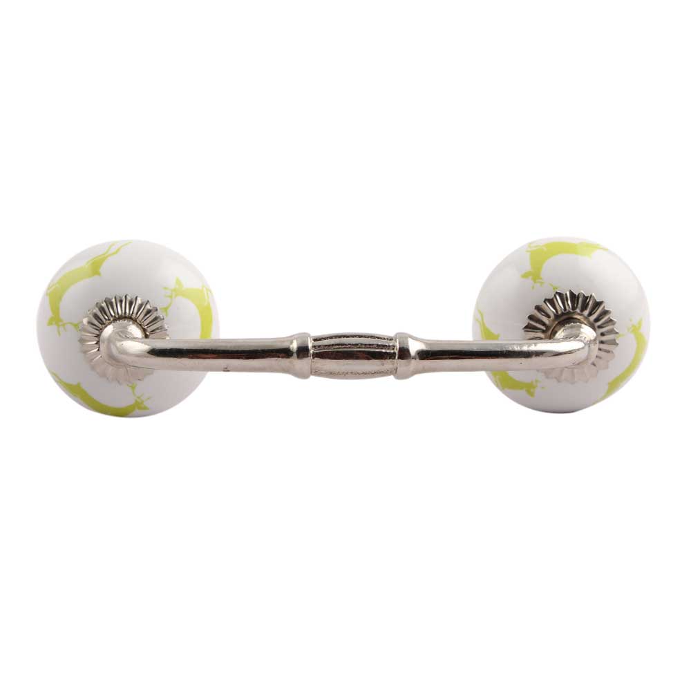 Lime Running Rein Deer Pattern Ceramic Bridge Handle. Ideal for Drawer, Dresser, Cabinet, Wardrobe, Cupboard and Almirah.