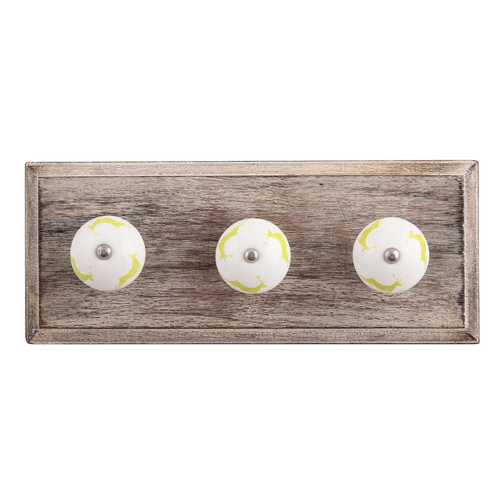 Lime Running Rein Deer Pattern Ceramic Wooden Hook. A Perfect Complement to the Soft Tone of the Wood are these White Traditional Hat & Coat Hook Made of Genuine Porcelain and Brass. It can be use to Hang Jewellery, Leashes, Towels, Scarves, Light Weight Sweaters, Caps Etc.