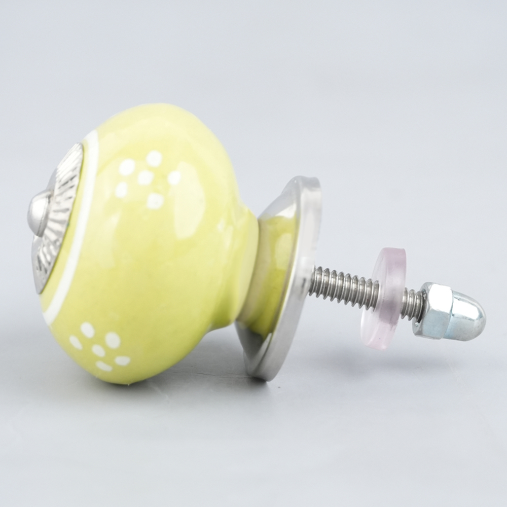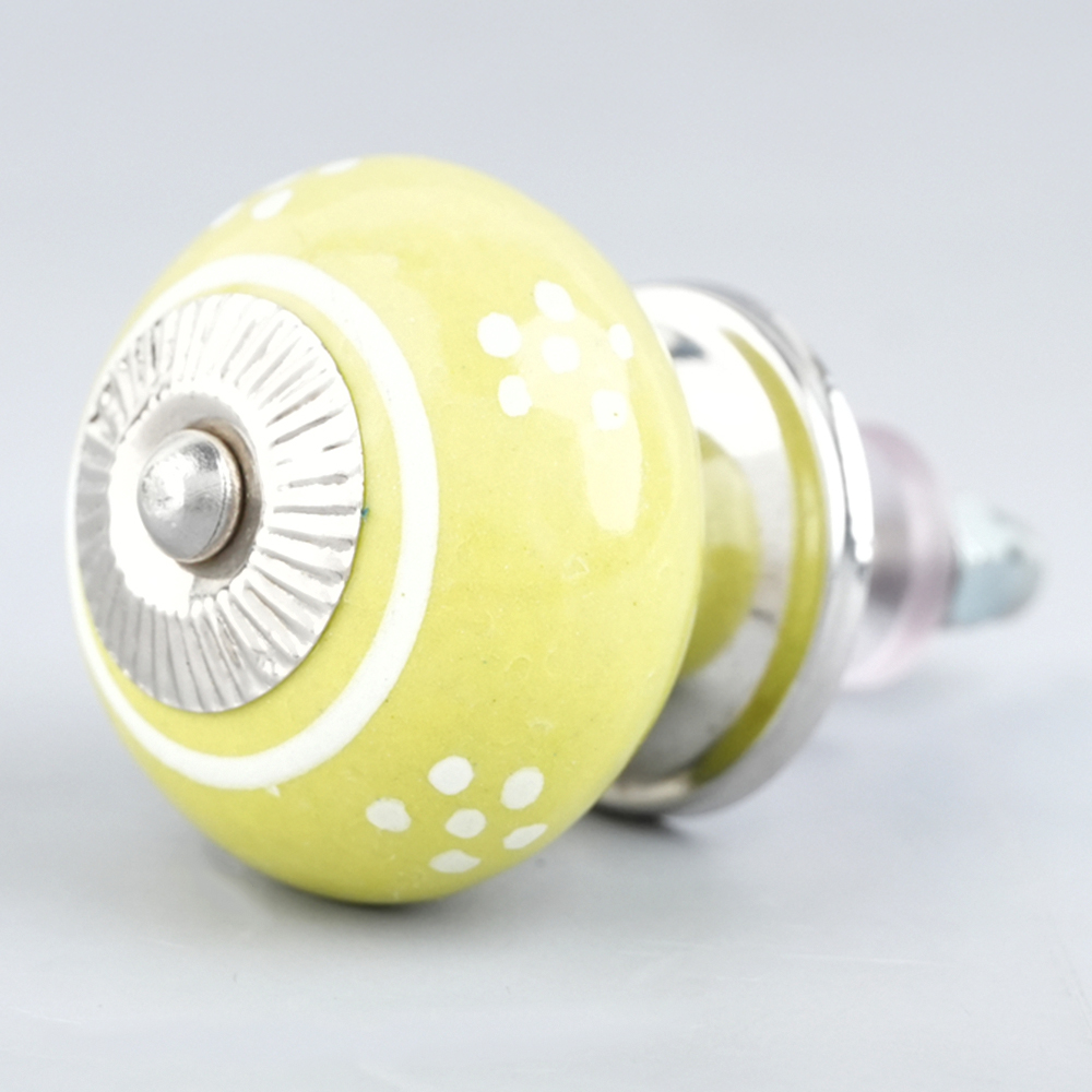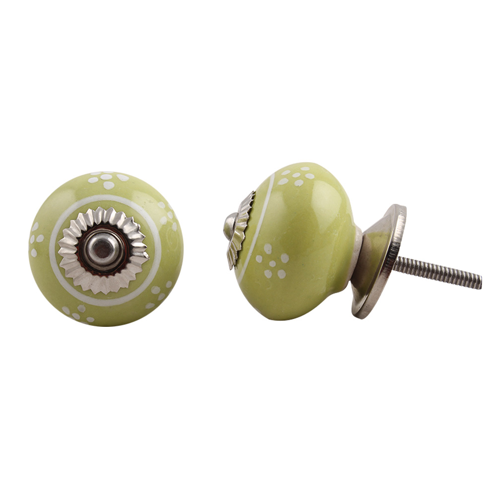 Lime Tiny Flower Ceramic Knob, kitchen drawers, dining room, bed room, chest drawers, dressing tables, almirahs, etc.