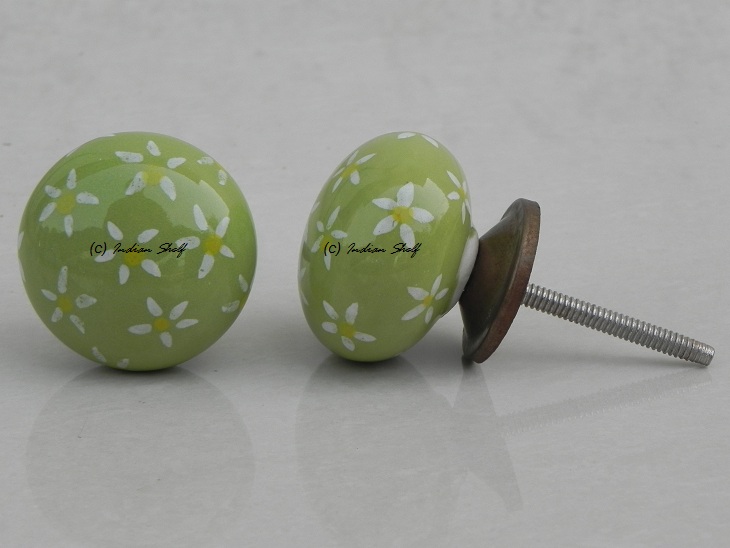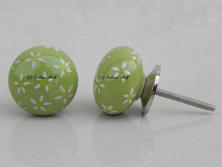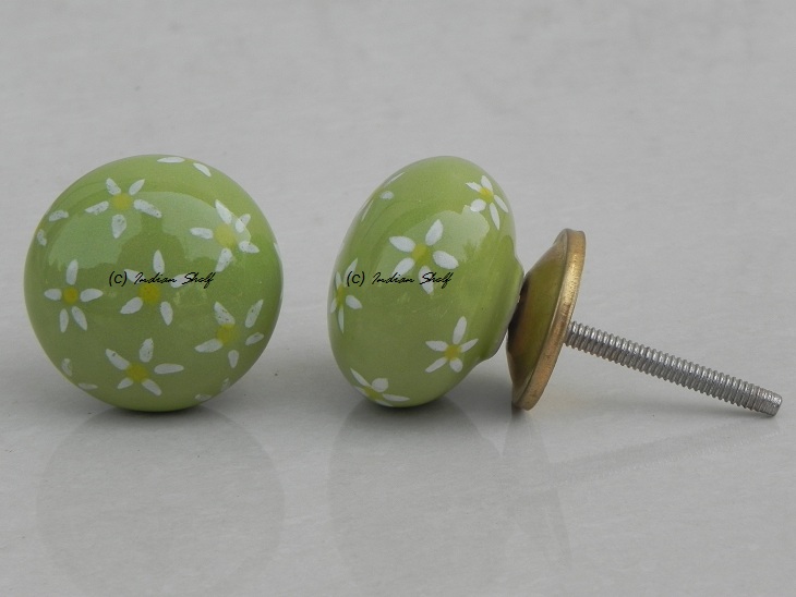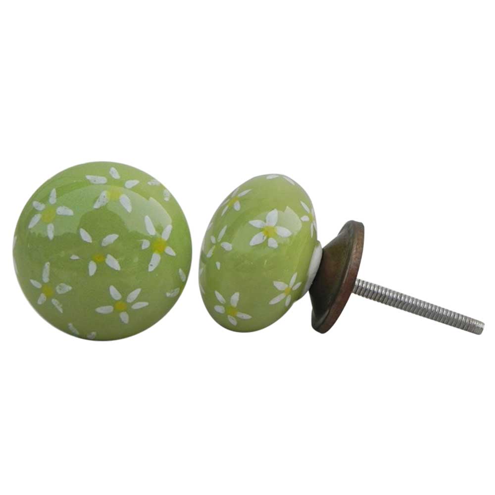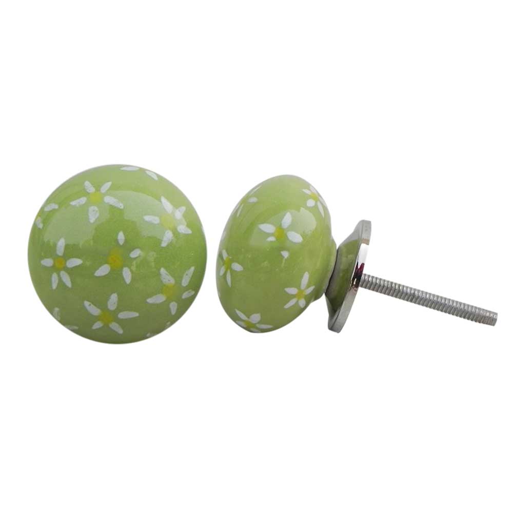 Lime Tiny Flower Ceramic Knob. Ideal for kitchen cabinets, kitchen drawers, dining room, bed room, chest drawers, dressing tables, almirah