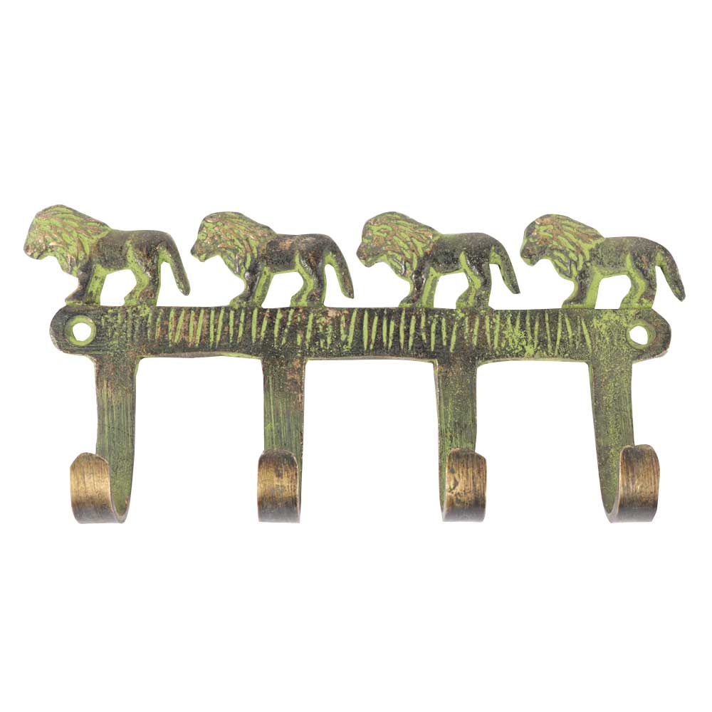 Brass Patina Key Hook Holder Lion Design Wall Mount Key Hanger Shape of Lion Looks Very Beautiful on Wall Home Kitchen Decor, Gift for Christmas or Birthday to Your Loved Ones.