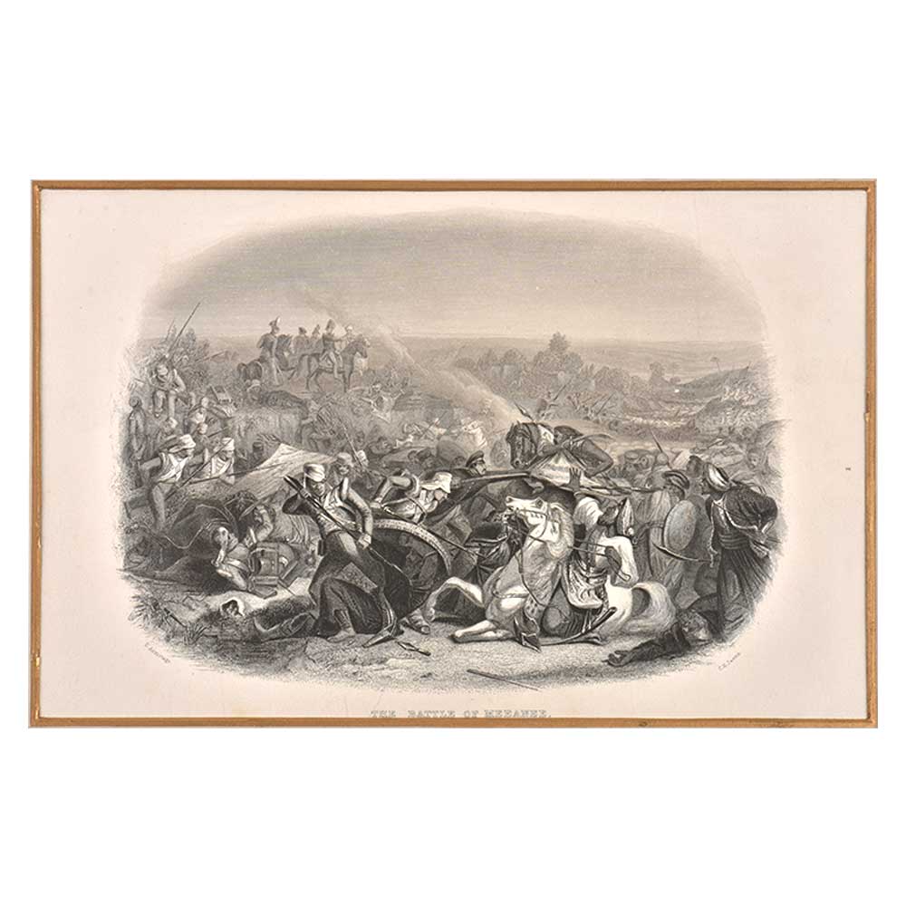 Lithograph based on: the Battle of Miani (or Battle of Meeanee) was a battle between British East India company forces under Charles Napier and the Talpur Amirs of Sindh led by Mir Nasir Khan Talpur, of today's Pakistan. The Battle took place on 17 February 1843 at Miani, Sindh in what is now Pakistan. This battle eventually led to the capture of parts of Sindh region, first territorial possession by British East India company in what is the modern-day country of Pakistan.