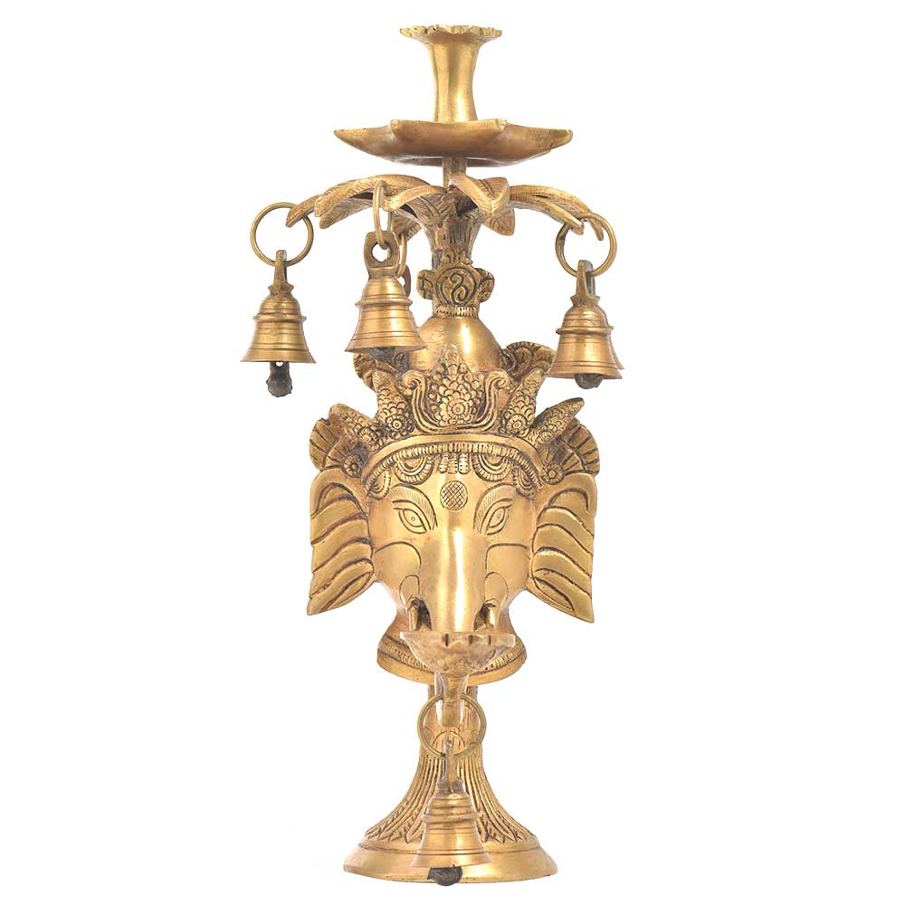Handmade Brass Ganesha Face Mask with Stand is An Ideal Home Dacor Product. Cute Bell Hang From the Ganesh Head. They are Made From Quality Brass and Looks Very Elegant to Light-In Up Your Festival. Handcrafted Piece of Art Made in Brass by Ingenious Craftsmen. can be Use for Pooja Purpose or as Display.