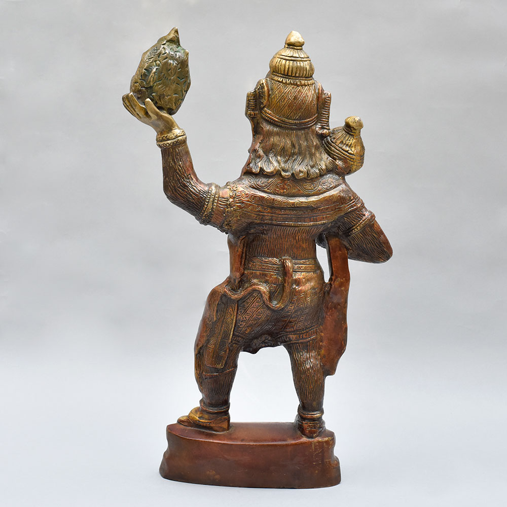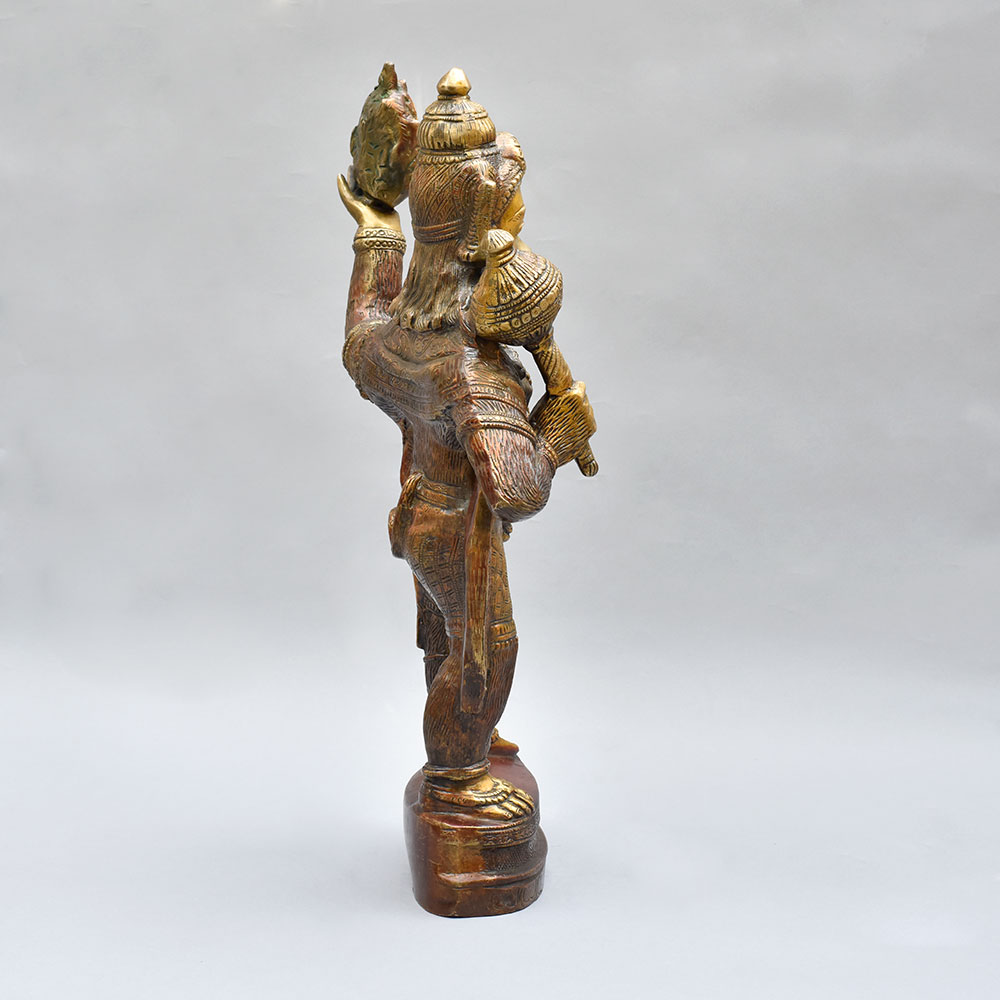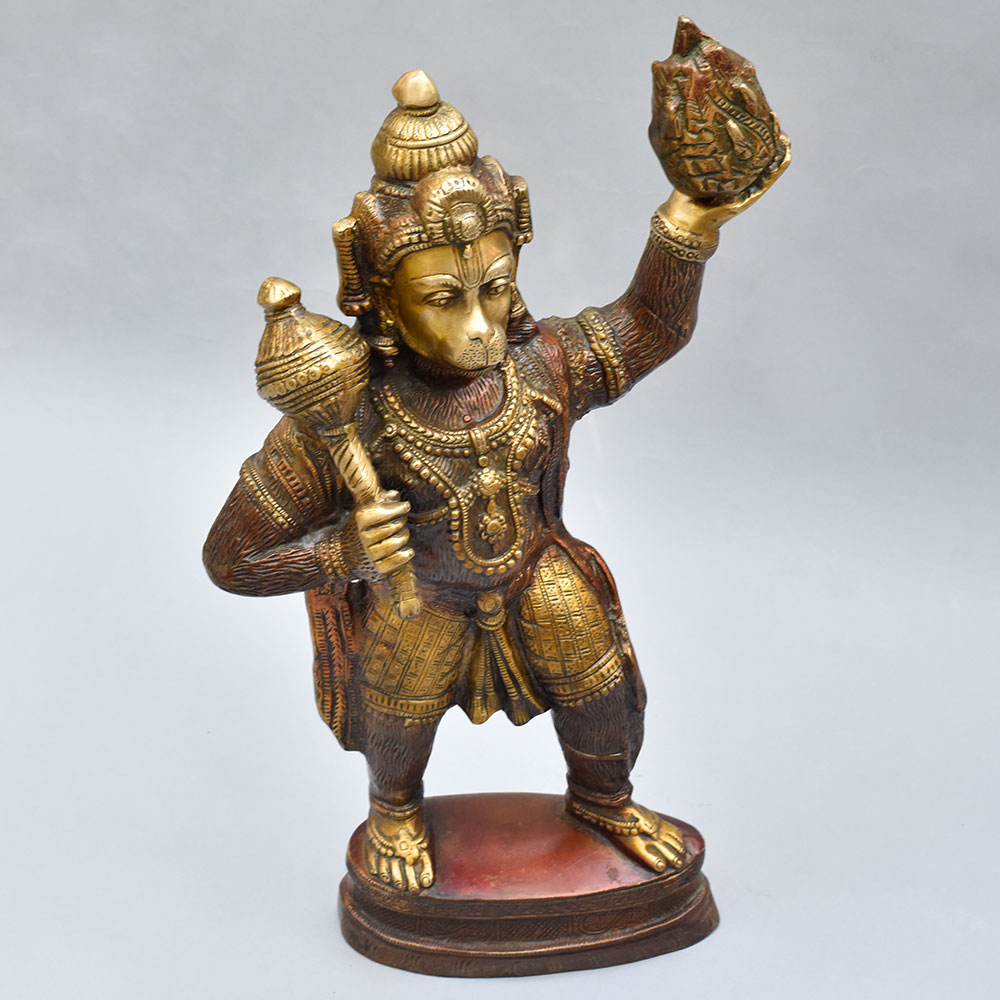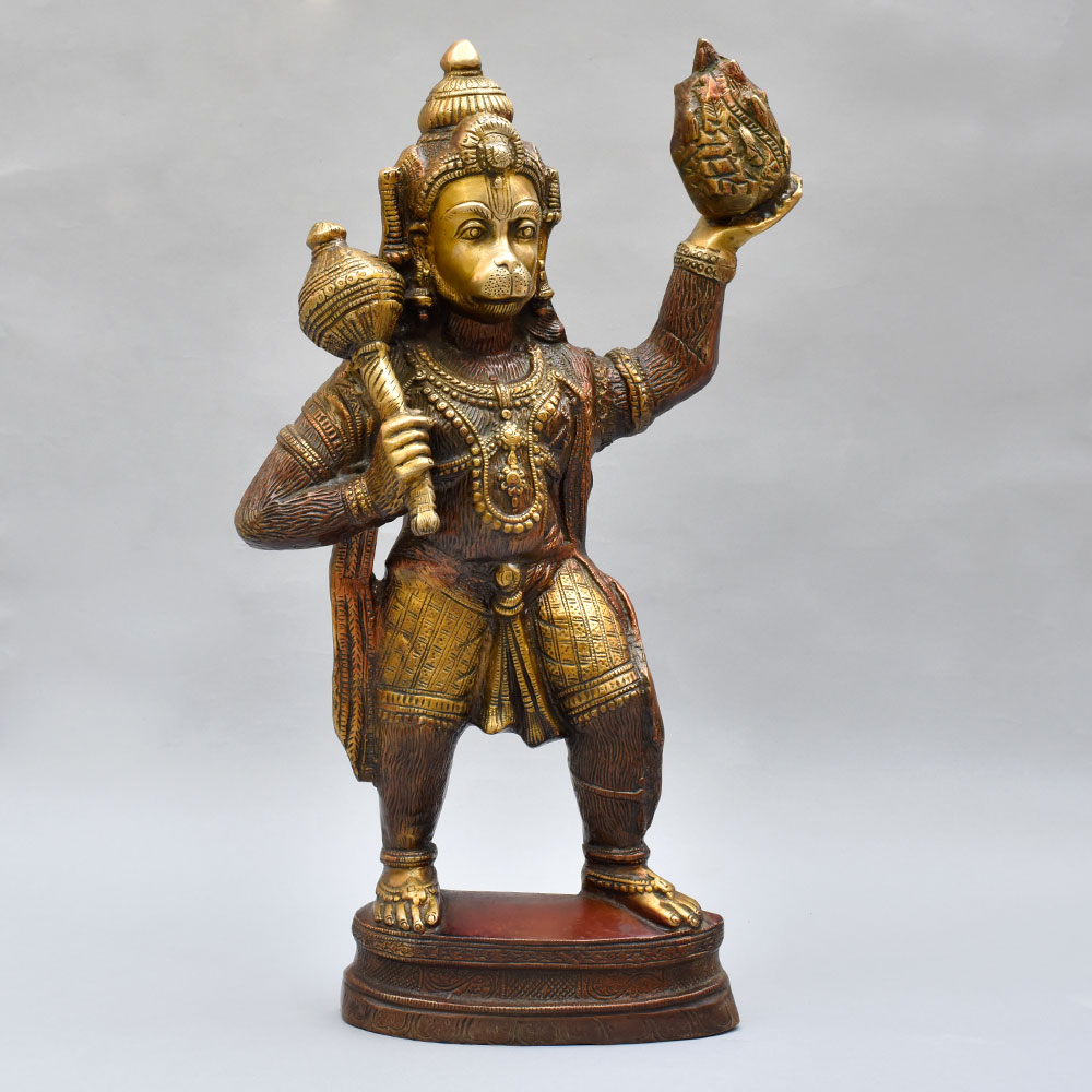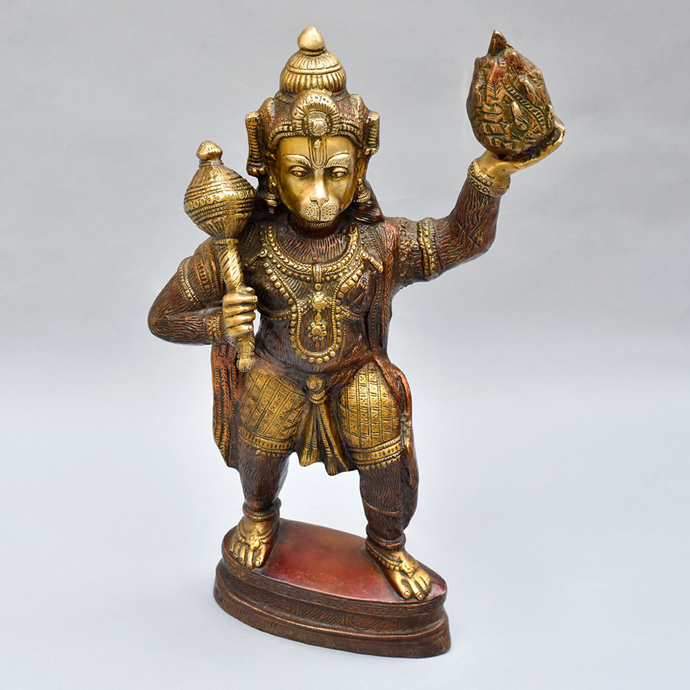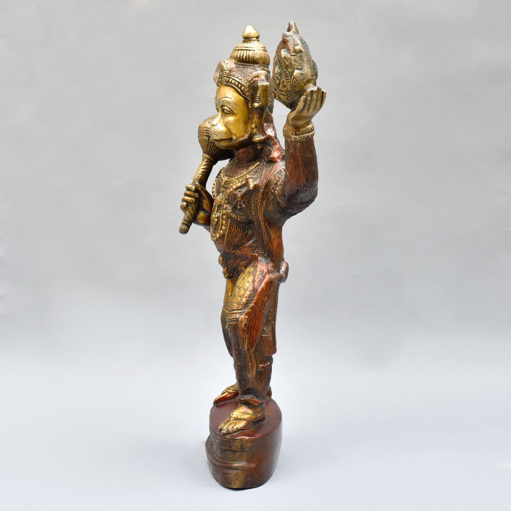 Lord Hanuman, the mighty monkey god, is revered for his unwavering devotion, incredible strength, and selfless service. This brass statue serves as a constant reminder to channel those virtuous qualities in your own life. As you gaze upon the powerful stance and determined expression of the deity, you'll be inspired to overcome obstacles, protect your loved ones, and dedicate yourself to the greater good. Whether you're a devout Hindu or simply appreciate fine craftsmanship and cultural art, this Lord Hanuman statue will be a cherished addition to your home. Place it in your meditation corner, on your office desk, or as a stunning centerpiece - and let the energy of this revered figure empower you every day.