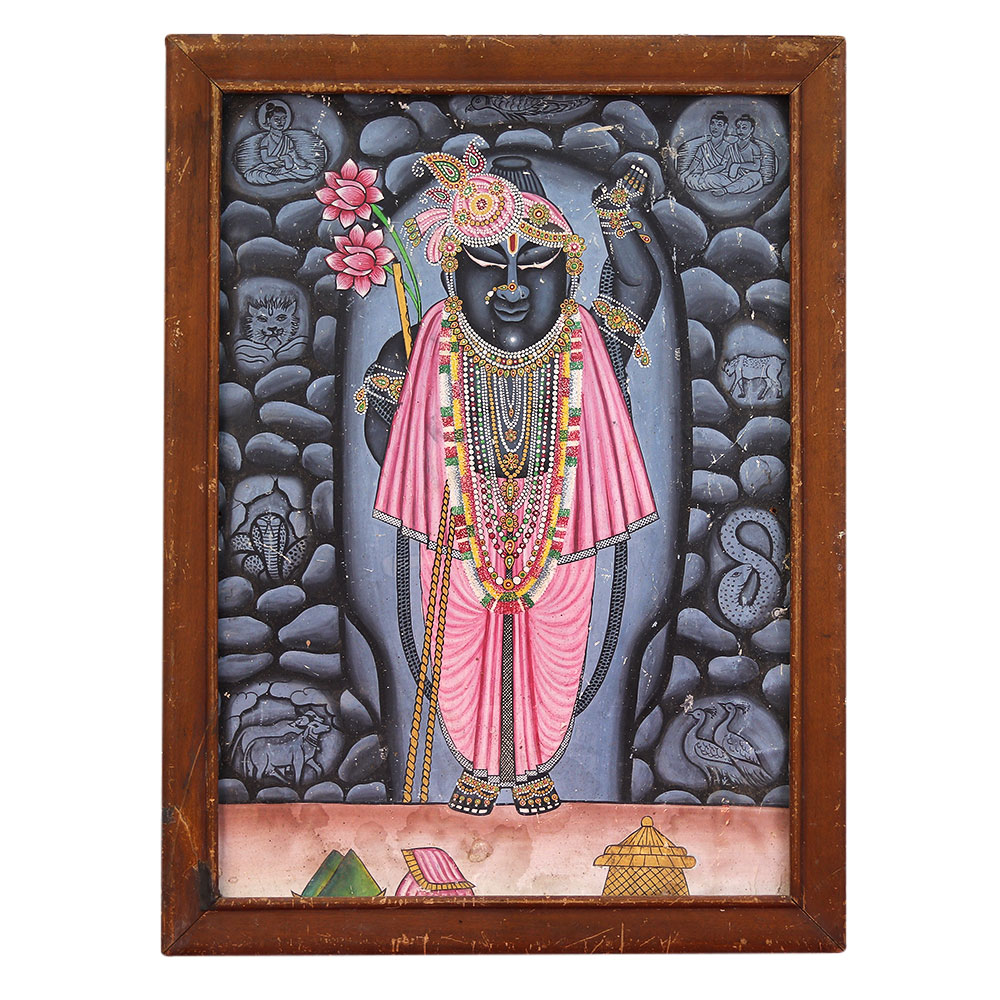 Witness the magic of the Nathdwara Temple's most sacred ritual with this captivating hardboard painting of "Raat ke Darshan." As the curtain parts to reveal the Lord Krishna in all his nocturnal splendor, prepare to be awestruck. This painting offers a profound glimpse into one of Hinduism's most revered traditions. During Raat ke Darshan, the Nathdwara Temple's curtains are drawn back to unveil Krishna in a special nighttime darshan, or audience with the deity. Devotees are awed by the sight of the Lord, whose beauty and majesty are enhanced by the soft, ethereal lighting of the night. With its vivid colors, intricate details, and masterful use of light and shadow, this painting allows you to experience the magic of Raat ke Darshan in your own sacred space. Whether you're an ardent Krishna devotee or simply appreciate fine religious art, this hardboard painting will be a treasured addition that nurtures the soul and inspires deeper spiritual reflection.