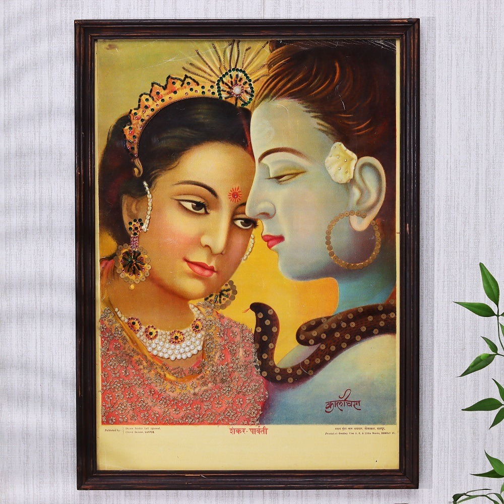 - Exquisite paper print of the iconic Lord Shiva and Parvati painting