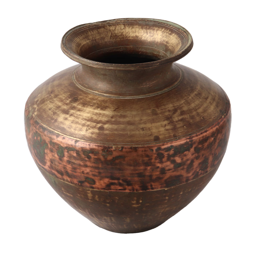 Local Indian artisans handcrafted a Ganga Jamuna holy water jar out of brass and copper. This stunning piece is a collector's delight and makes an excellent décor, stage decoration, wedding present, Diwali gift, and so on.