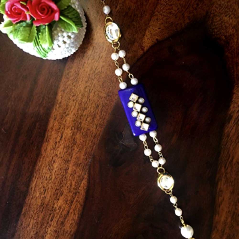 Purple designer resin stone with 2 kundan and pearl ghanthan.